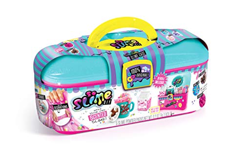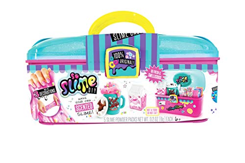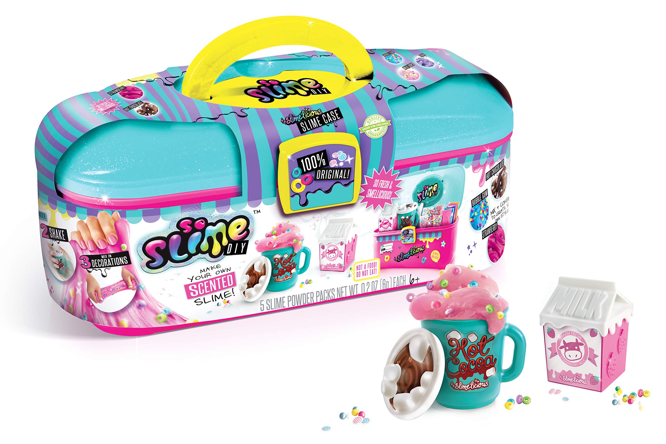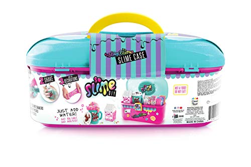 Make your own scented slimes with this slime'licious slime case! Slime'licious slimes are so fresh and delicious! This slime kit is so fun and easy to create custom food-inspired slimes without a mess. Includes everything you need. just add water! No glue required. This amazing slime kit comes inside plastic storage case to keep all your slimes and decorative slime mix-ins organized. Slime case includes 2 different collectible slime shakers and 5 styles of so-sweet scented slime powders: bubble gum, hot Cocoa, Strawberry, Grape, and popcorn. Yes, you can even make popcorn slime or Strawberry milk & cereal slime! Simply pour one slime powder Pack and water into the shaker cup. then shake for 30 seconds. Your slime is ready in 5 minutes! Mix in the pack of decorations and enjoy your sweet scent-sational slime! Store all your slimes in the cool storage case that you can decorate with slime'licious stickers! Includes 5 scented slime powder packs, 5 packs of decorations, 2 reusable slime shaker containers, 1 mixing tool, 1 sticker sheet and instructions. Mix your slime recipes and scented combinations! Collect and make all the slime'licious styles from So Slime DIY. Ages 6+. made in China. Notice: colors and styles of contents may vary. Conforms to ASTM D-4236. Do not put content near eyes or mouth. This product is not food and not to be used as food containers. do not eat or ingest contents. Wash hands after use. Contents contain colorants that may stain certain surfaces. Read all instructions before use.
