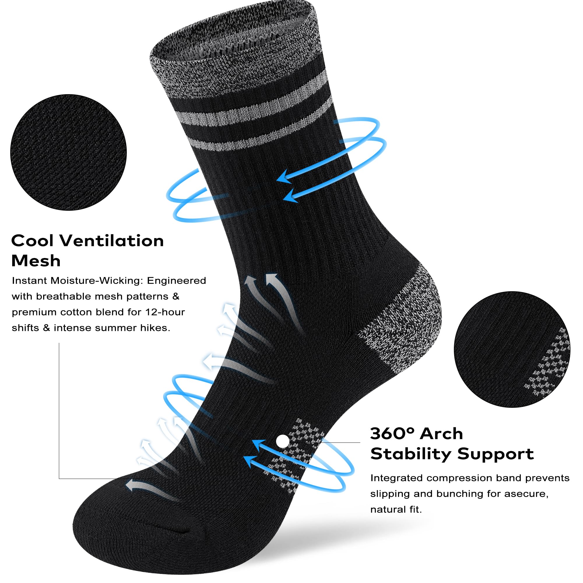 Advanced Moisture-Wicking Breathability: Designed with strategic mesh ventilation panels on the instep to maximize airflow. The premium moisture-wicking cotton blend keeps your feet cool and dry, effectively controlling odor and moisture during 12-hour nursing shifts or summer hikes