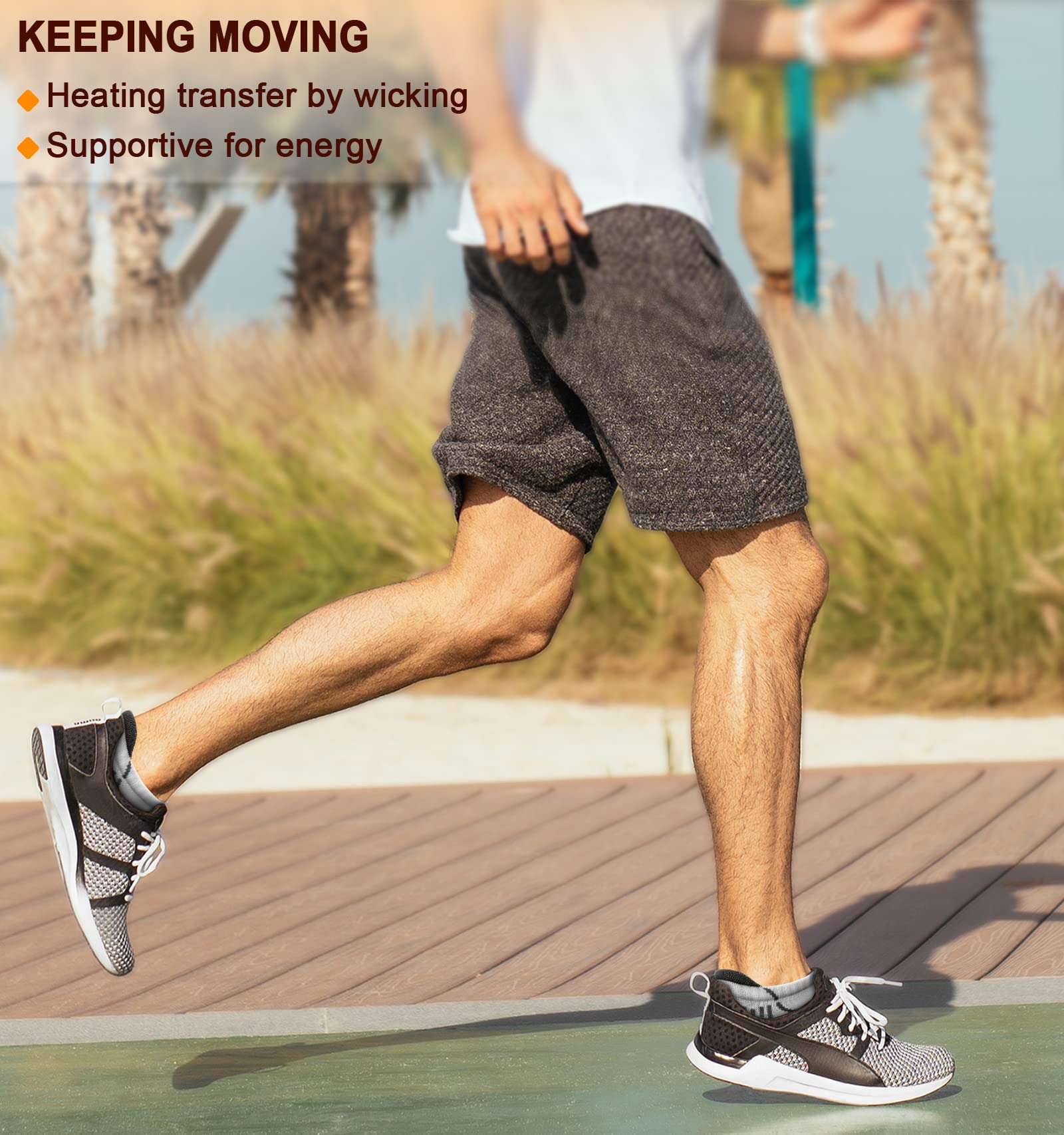 Athletic Support--The Power bands of this athletic Lycra in this socks gives a perfect elasticability to hold your feet all around,and the elstic loope knitted in the middle feet can adapt an optimum tightness to follow your feet in any kind of motion,the sole is fully cushioned to provides a full support to the feet for best energy;