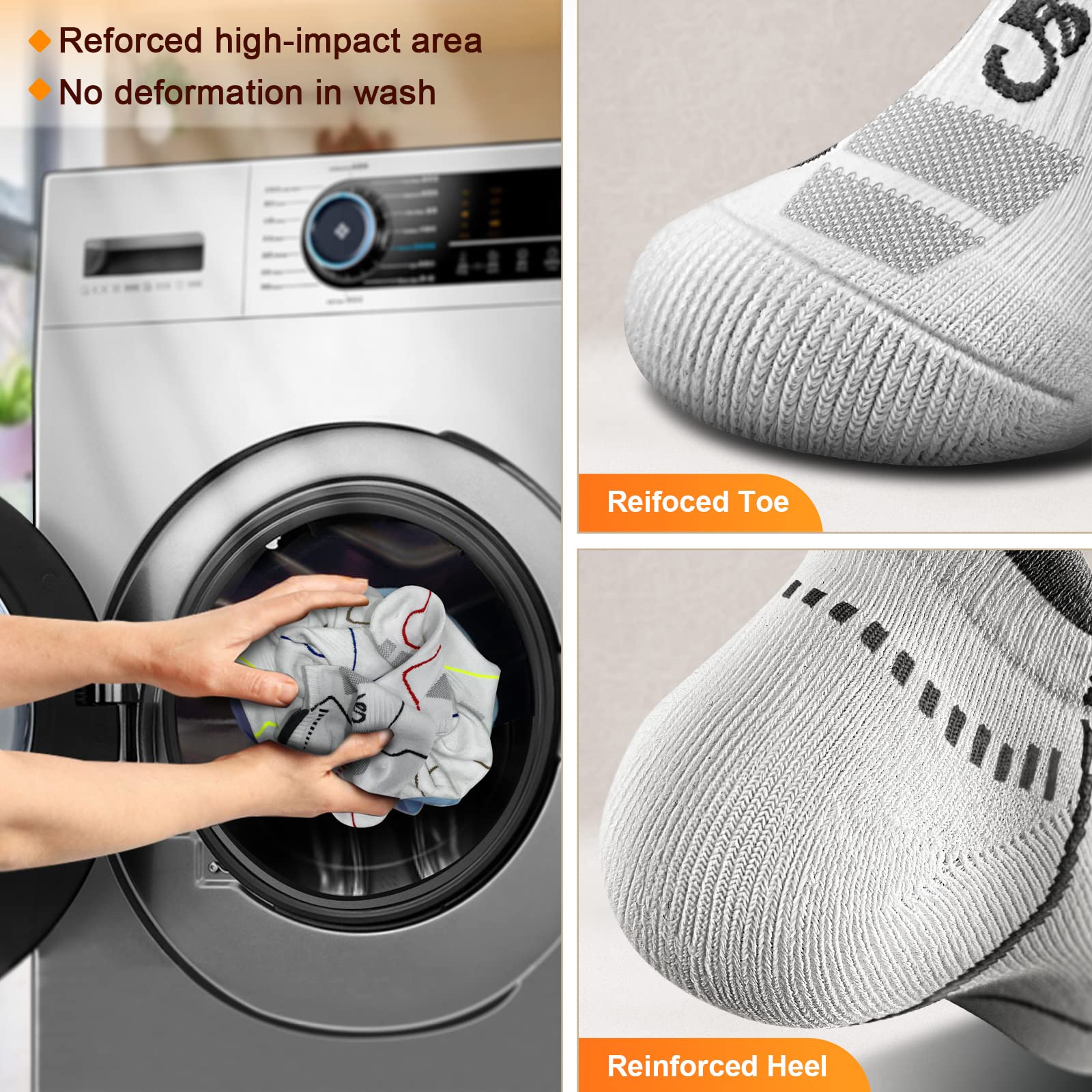 Durable--The 200 needle-count fabric knitting all around,high-density cushion in full sole and double knitting in all the joint positions,all these details proivdes a superior reliability and durability to this athletic socks to against any problem of tearing off or wearing out;
