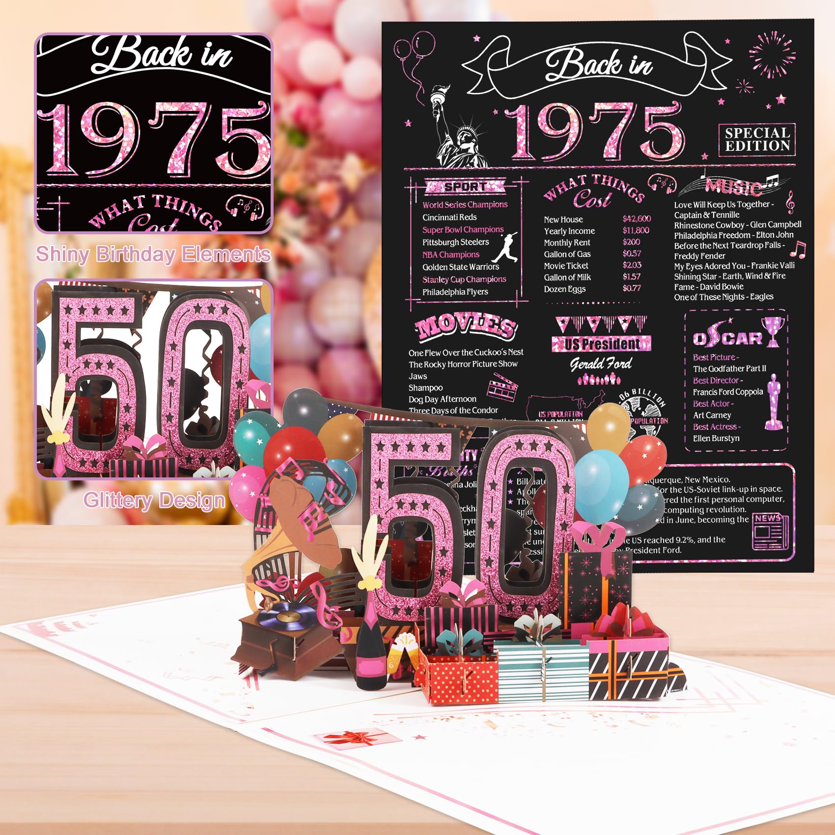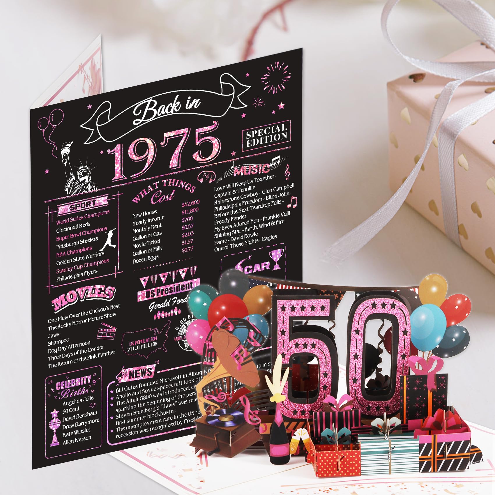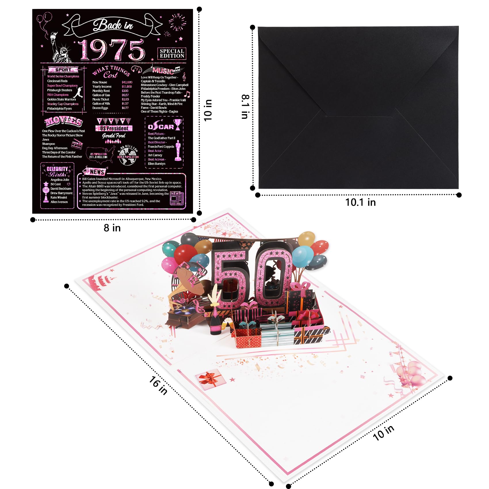 Happy 50th birthday 3D Greeting Card is a fun birthday gift to read with your elders and grandparents about fun things to do in 1975. Opening the greeting card pops up the number 60, decorated with balloons and gift boxes. Ideal creative gift for parties. Make your birthday or anniversary party decorations stand out