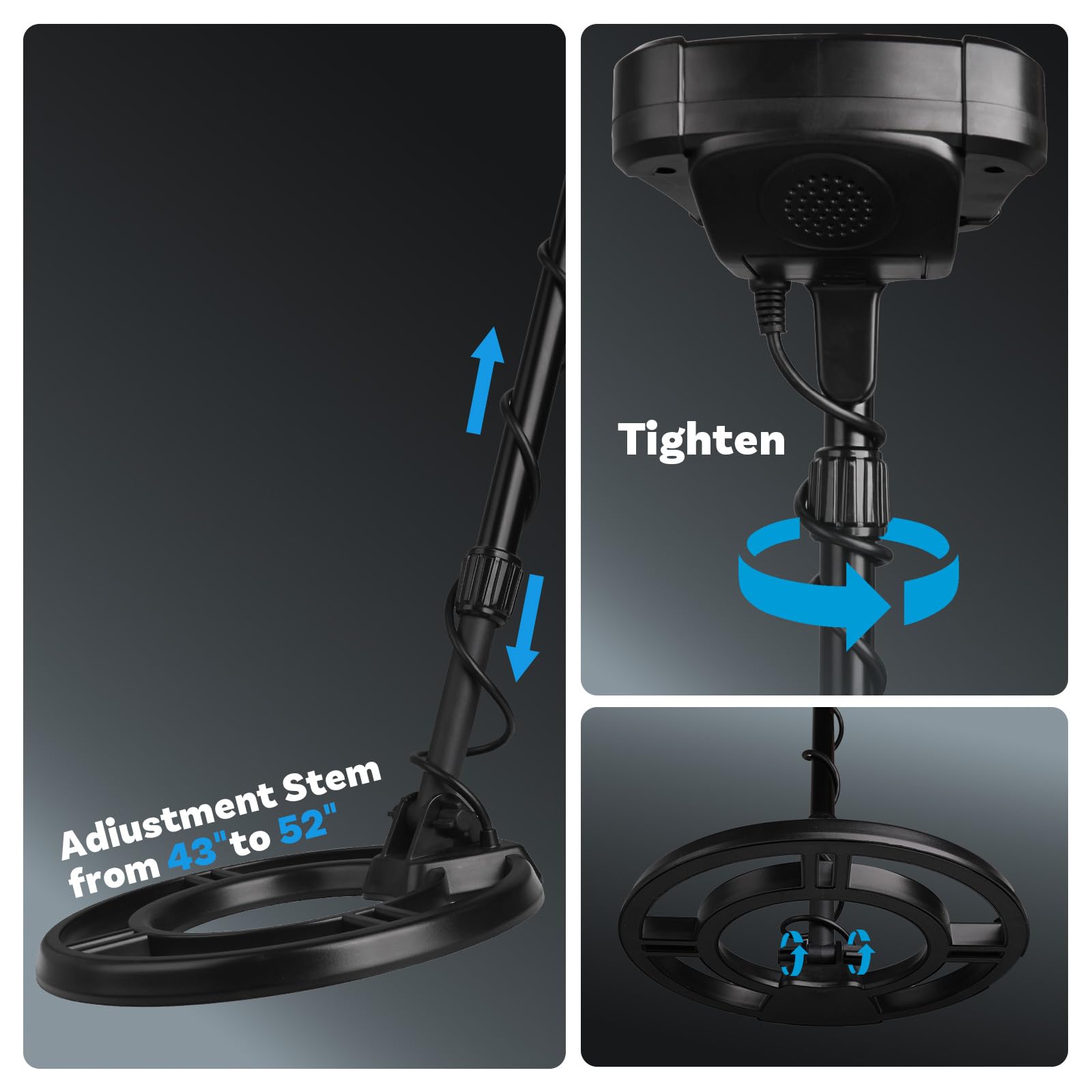 Adjustable Shaft for Adults:The shaft of metal detector adjusts from 110 cm to 130 cm for easy use and portability. Perfect for family adventures or solo treasure hunts. Five sensitivity levels help adapt to various ground conditions with ease