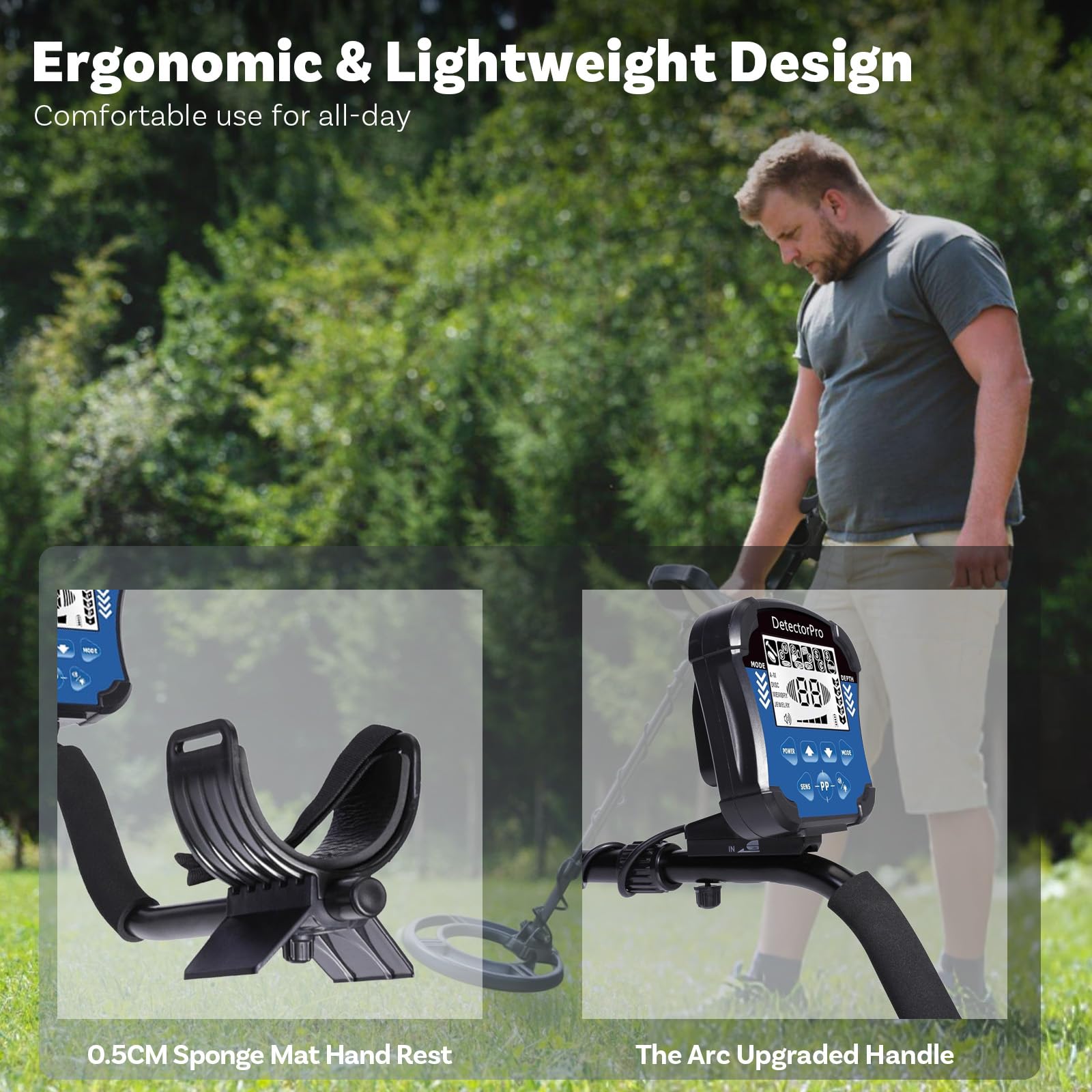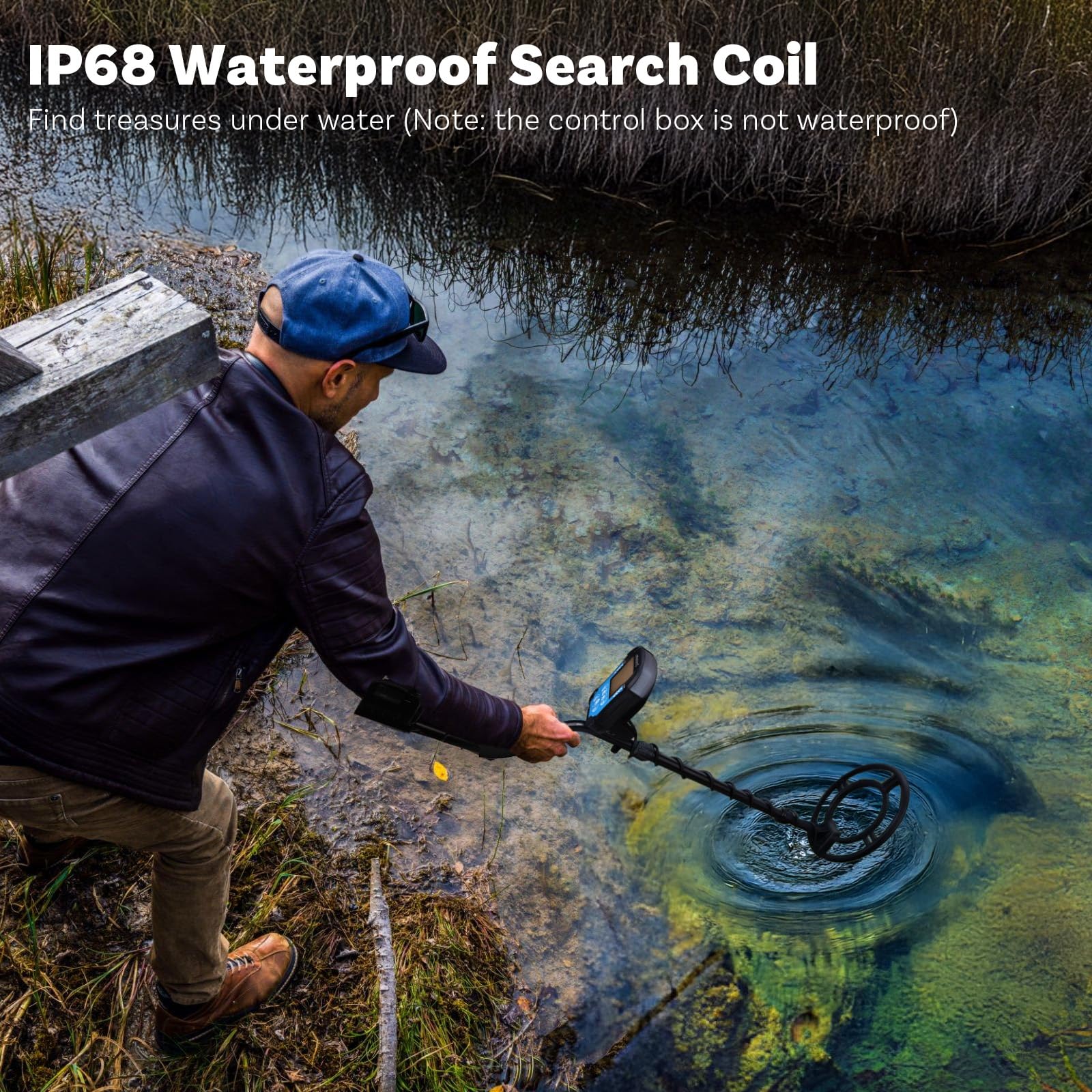 10” Waterproof Coil for Outdoor Exploration: The IP68 waterproof search coil allows for detecting in shallow water, beaches, muddy fields, or forests. Metal detector perfect for all-weather use so you never miss a treasure-hunting opportunity