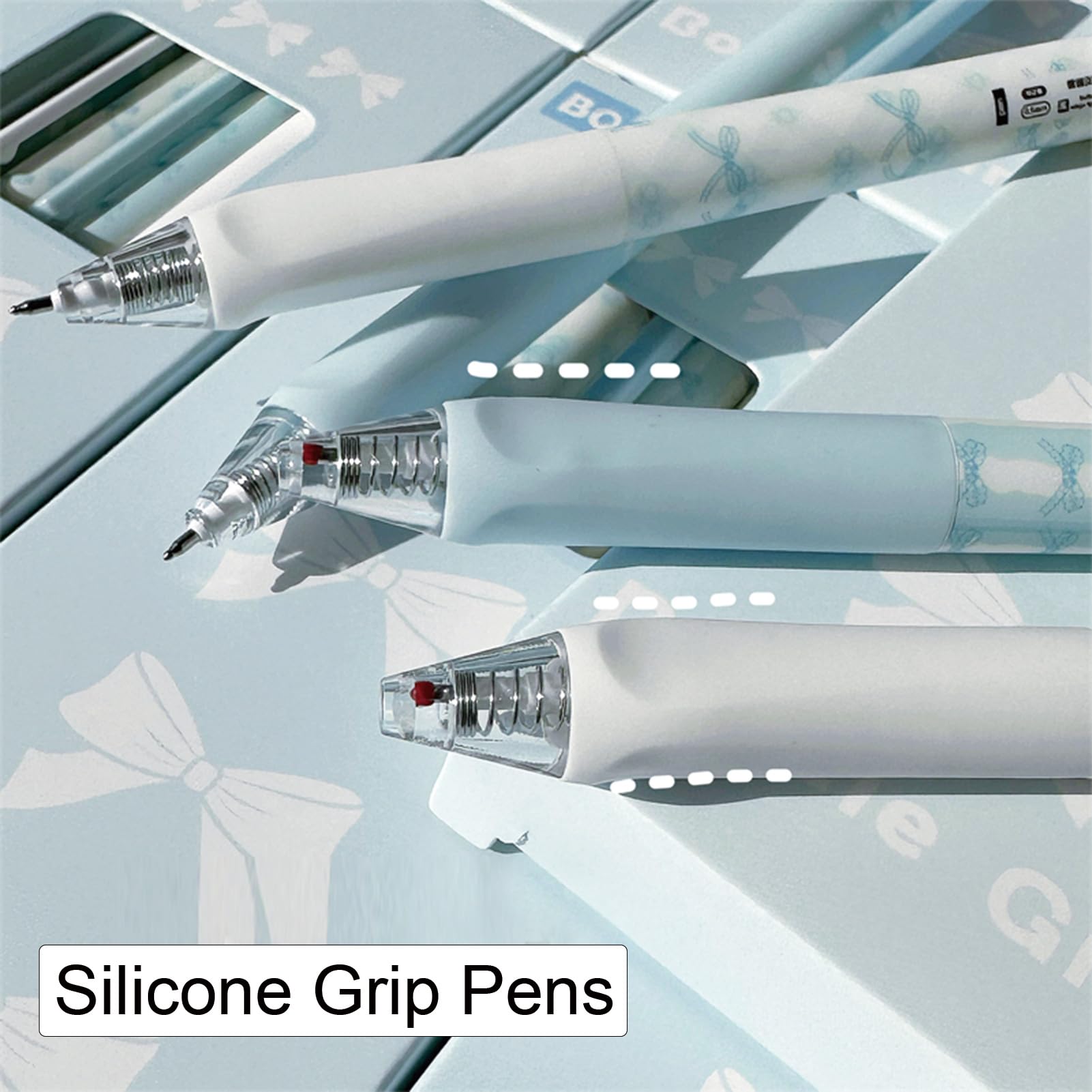 Soft Grip Pens: With silicon grip provides a good touch feeling, easy and comfortable to hold. Cute cartoon patterns and lovely bowknot desgin, cute pens for girls women.