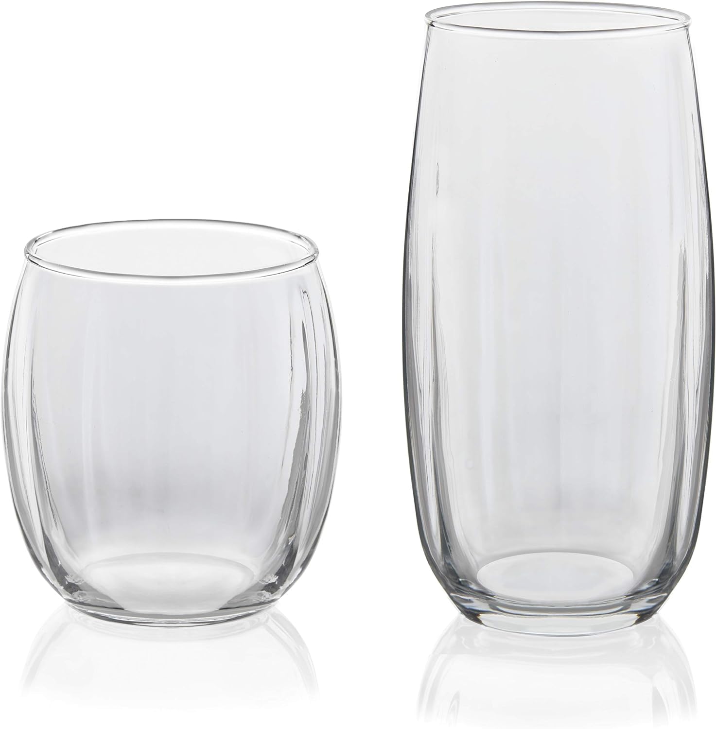 Tumbler and Rocks Glass Set:Raise your entertaining game with our all purpose drinking glass set; this Samba glass drinkware set contains a glass tumbler set of 8, 16-ounce cooler glasses plus a set of 8, 13-ounce rocks glasses