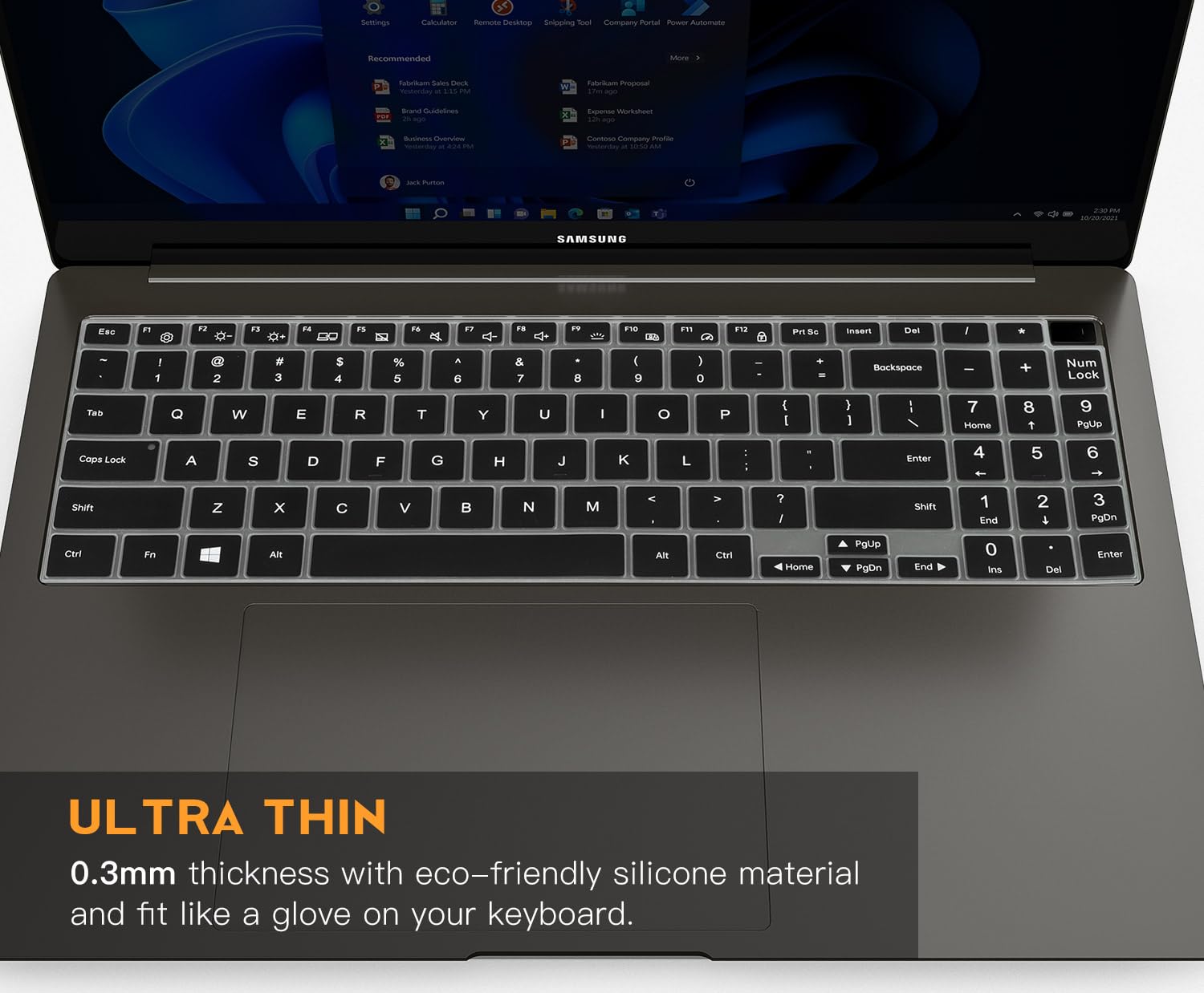 【Washable & Reusable】- The Samsung galaxy book pro silicone cover can be washed by soapy water and make it as clean as a new one. Just put it back on the keyboard when it get dry enough.