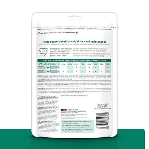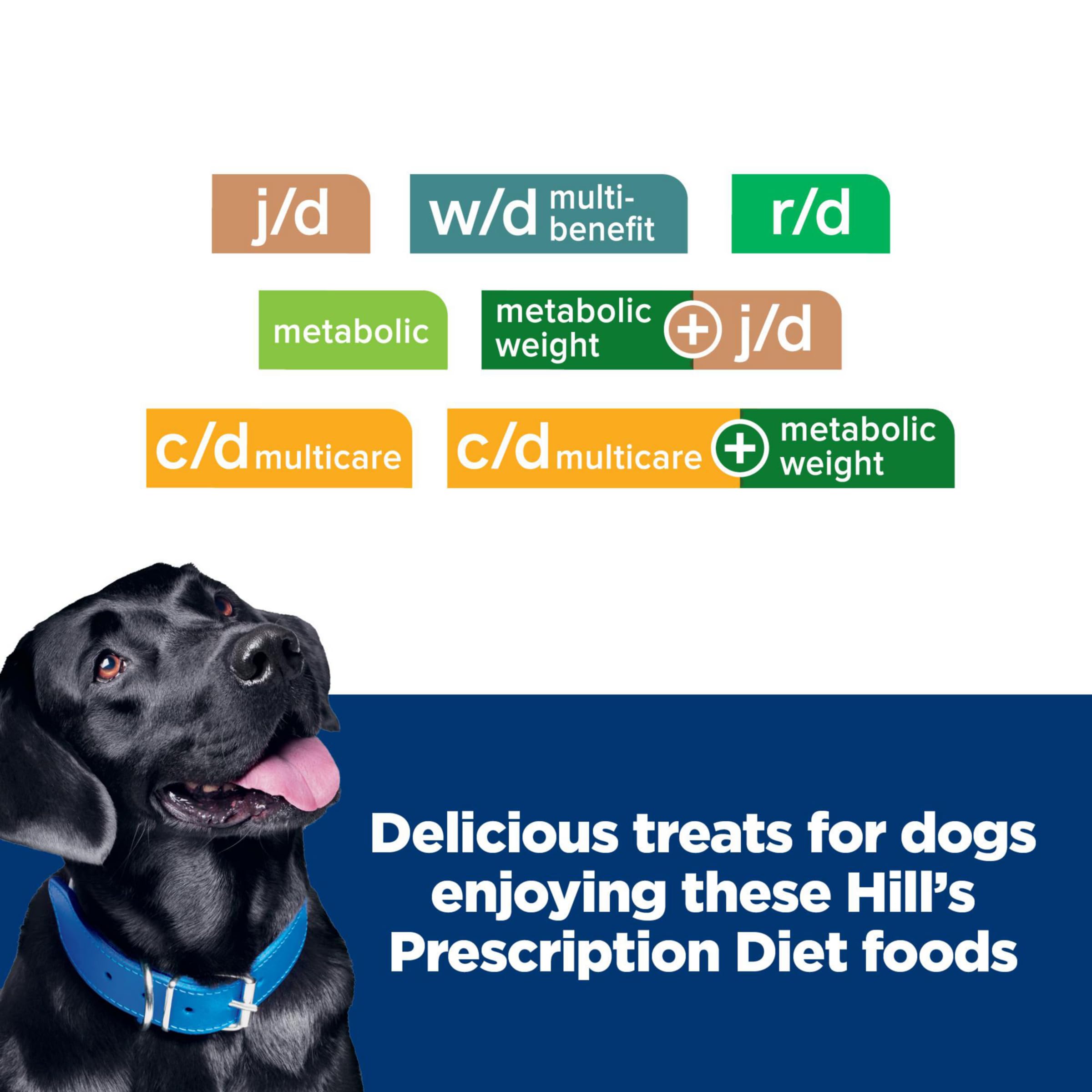 Prescription Diet Metabolic Dog Treats are tasty, healthy and rewarding treats for adult dogs to support healthy weight loss and weight maintenance.Prescription Diet Metabolic Canine Treats are tasty, healthy and rewarding treats for adult dogs to support healthy weight loss and weight maintenance. Prescription Diet Metabolic Canine Treats are a great complement for dogs being fed Prescription Diet c/d Multicare, c/d Multicare + Metabolic Weight, j/d, Metabolic, Metabolic Weight + j/d, r/d, or w/d Multi-Benefit dog food. They are also appropriate for all healthy adult and senior dogs or dogs being fed Science Diet Adult Perfect Weight or Science Diet Adult Light dog food. Your dog will love these tasty crunchy bone-shaped biscuits which are moderate in calories, protein and phosphorus, low in sodium and have increased fiber. They are designed to complement many Prescription Diet foods and, when fed as directed, can help support healthy weight loss and maintenance.These treats are also formulated to be compatible and complementary with Prescription Diet products that have the S+OXSHIELD.
