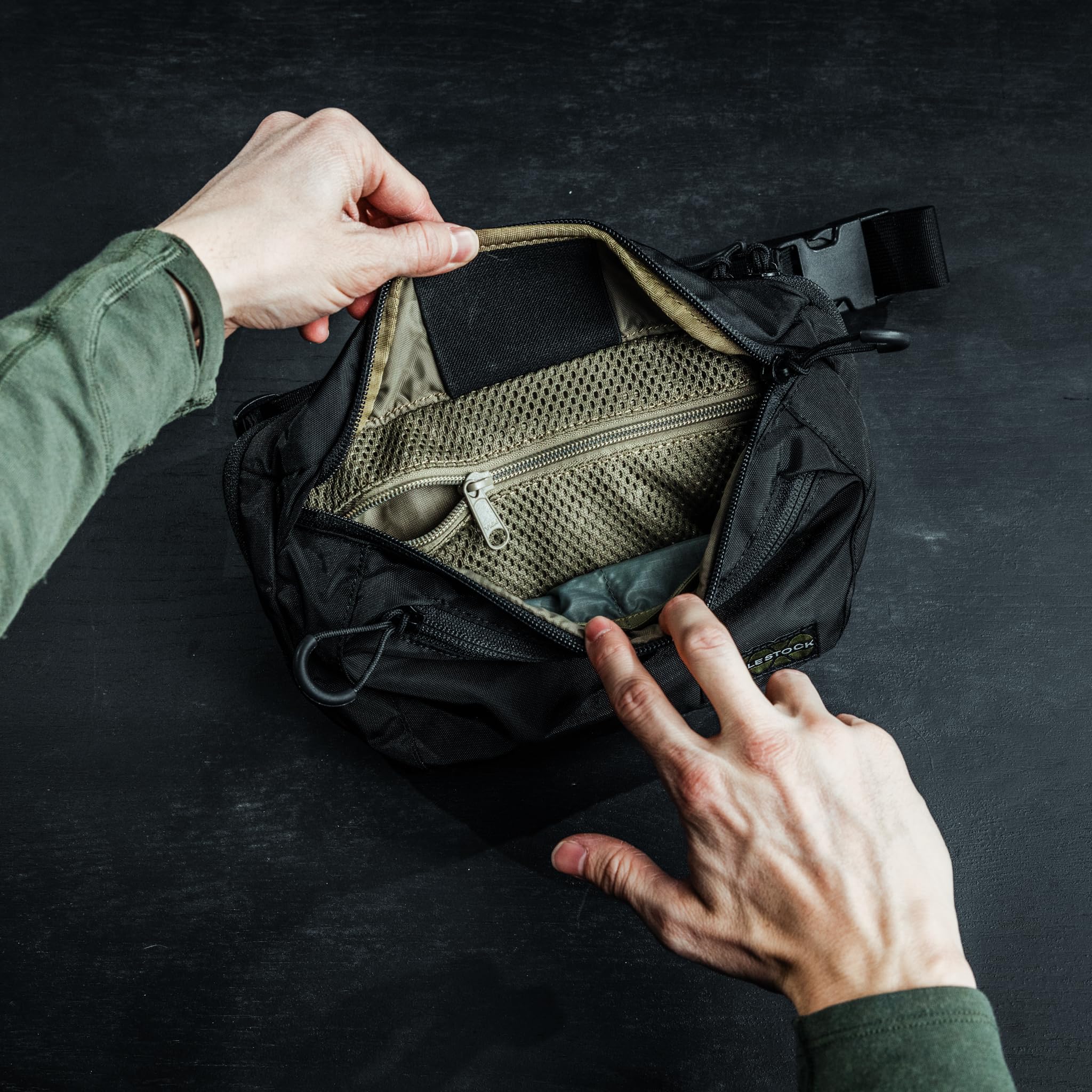 Like an ammunition Bandolier, the Bando Bag is a lightweight and convenient way to transport your EDC items. A full-zip back pocket on the Bando measures 5.5”h x 9.5”w x 1”d, large enough to secure most sub-compact and compact sidearms like the Glock-19 and those similar in size. The main compartment features an interior mesh zippered pocket, and two slip pockets for additional organization. A small zippered front pocket is perfect for keys, cords, or other small items. The waist belt length is adjustable from 31.5” - 44”. *The new Bando XL will be available in March 2024, sign up to be notified first when they arrive. The full-zip back pocket on the Bando XL measures 6"h x 11"w x 3"d, large enough to secure most full frame sidearms and smaller. As of January 2024 the Bando and Bando XL will include an integrated sleeve to conveniently carry a tourniquet below the top flap of the main compartment.