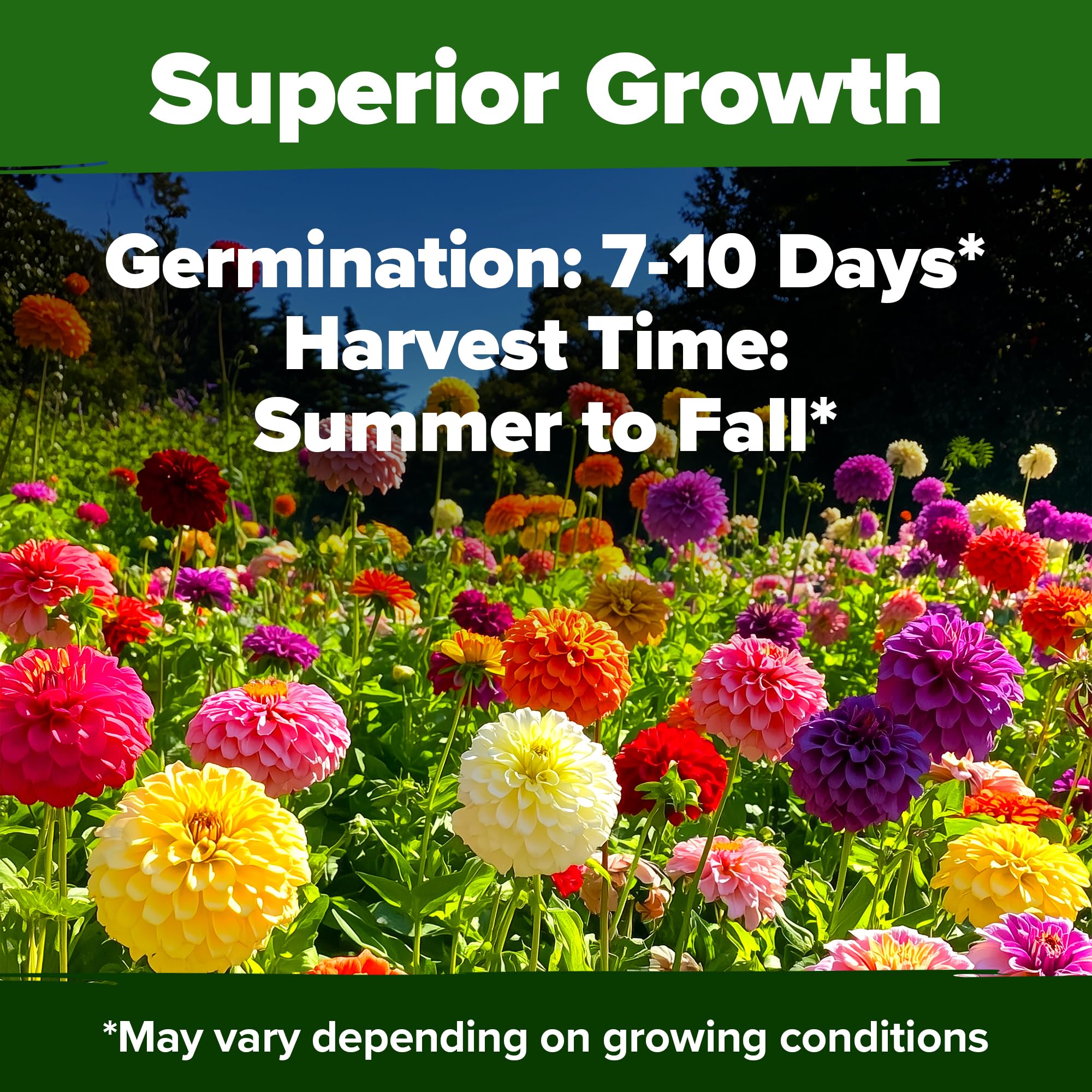 LARGE PACK FOR FULL GARDEN COVERAGE: Each seed pack includes approximately 524 premium Zinnia Dahlia seeds, giving you enough to plant a wide area—ideal for garden borders, flower beds, or large landscape designs. Enjoy continuous blooms and a high return on planting. This makes them an ideal value choice for mass planting or sharing with friends and family.