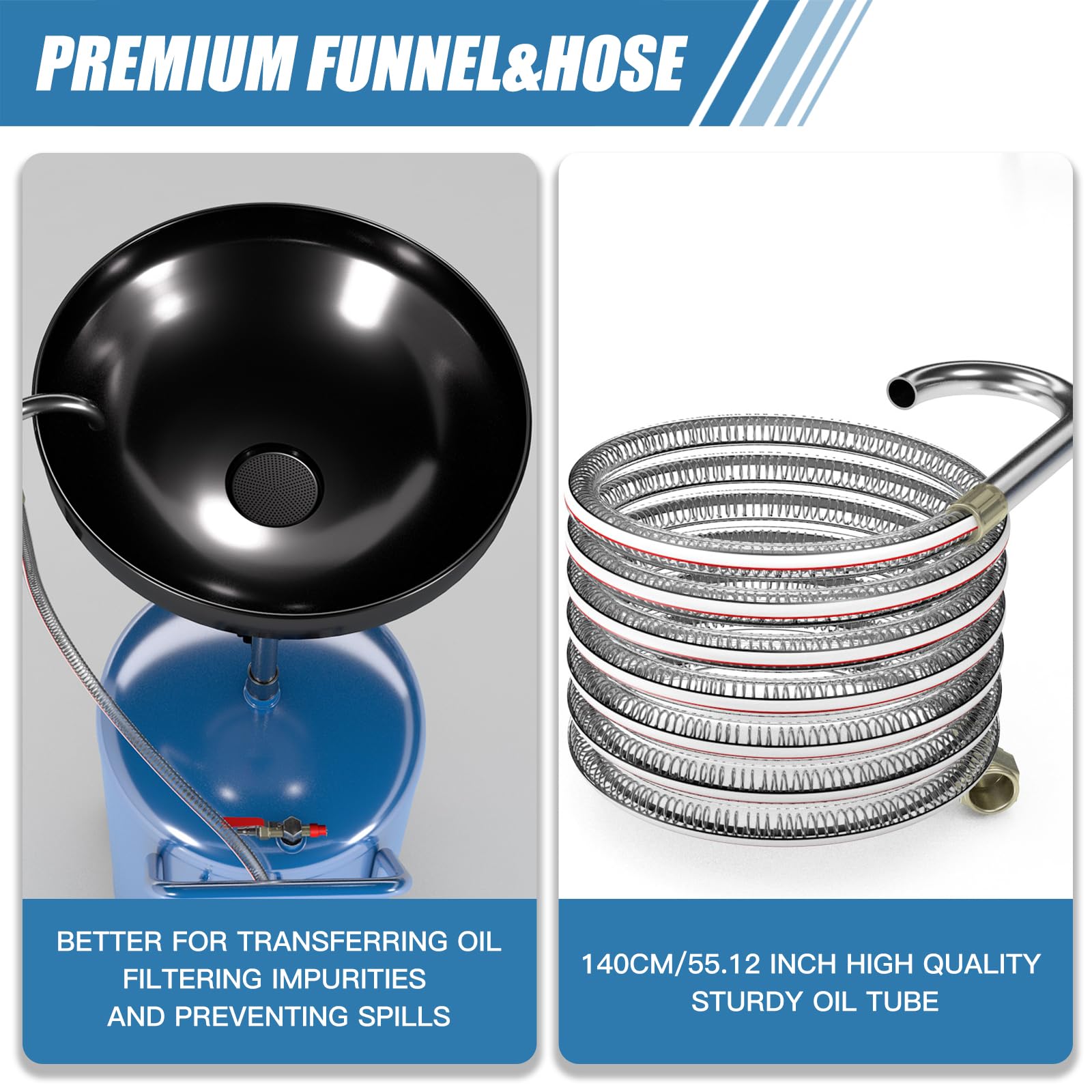 【Large Diameter Funnel】: Portable waste oil drainer is designed in funnel shape with 17.9’ diameter, the waste oil drain container ensures fast and more efficient delivery of waste oil and reduces the time spent on oil change jobs.