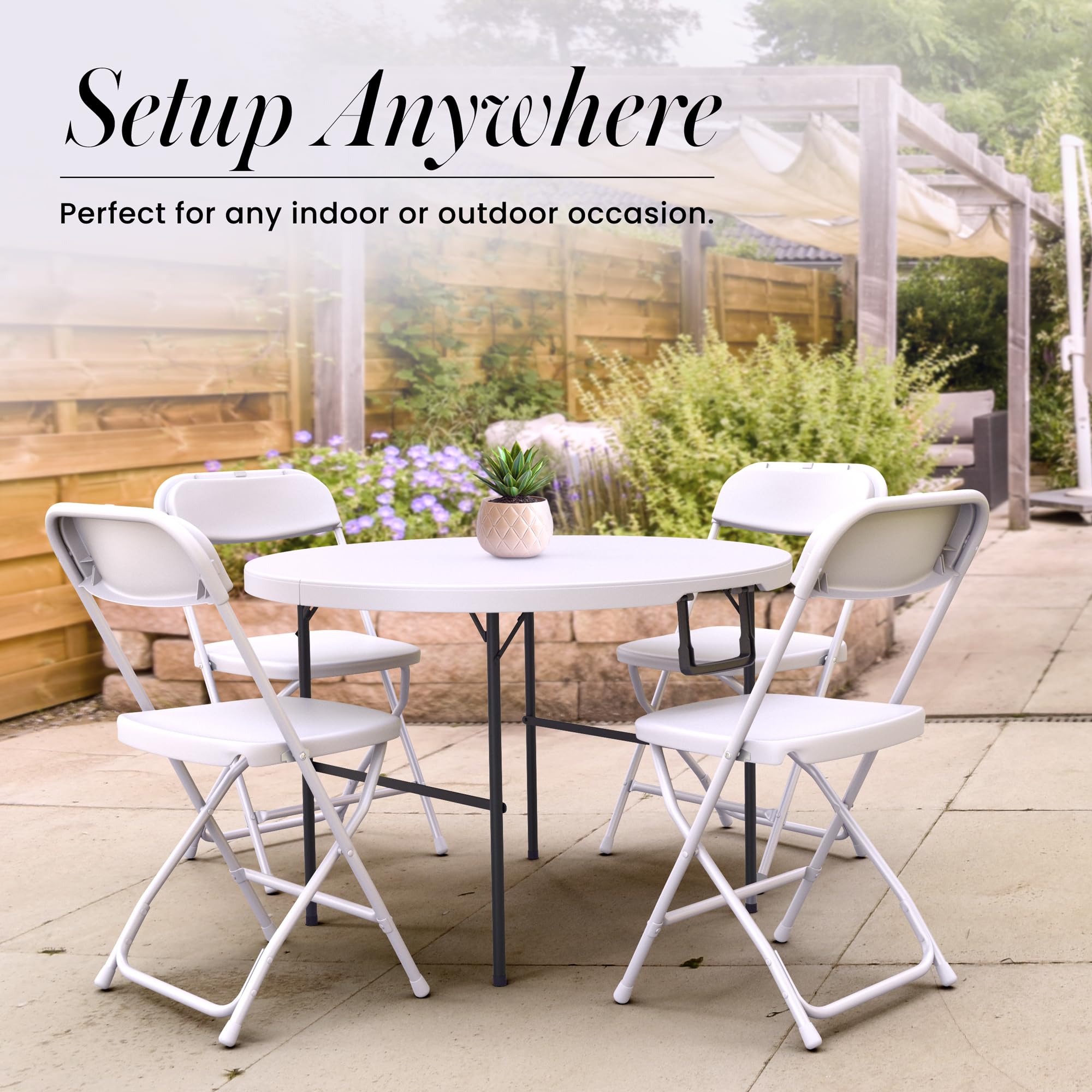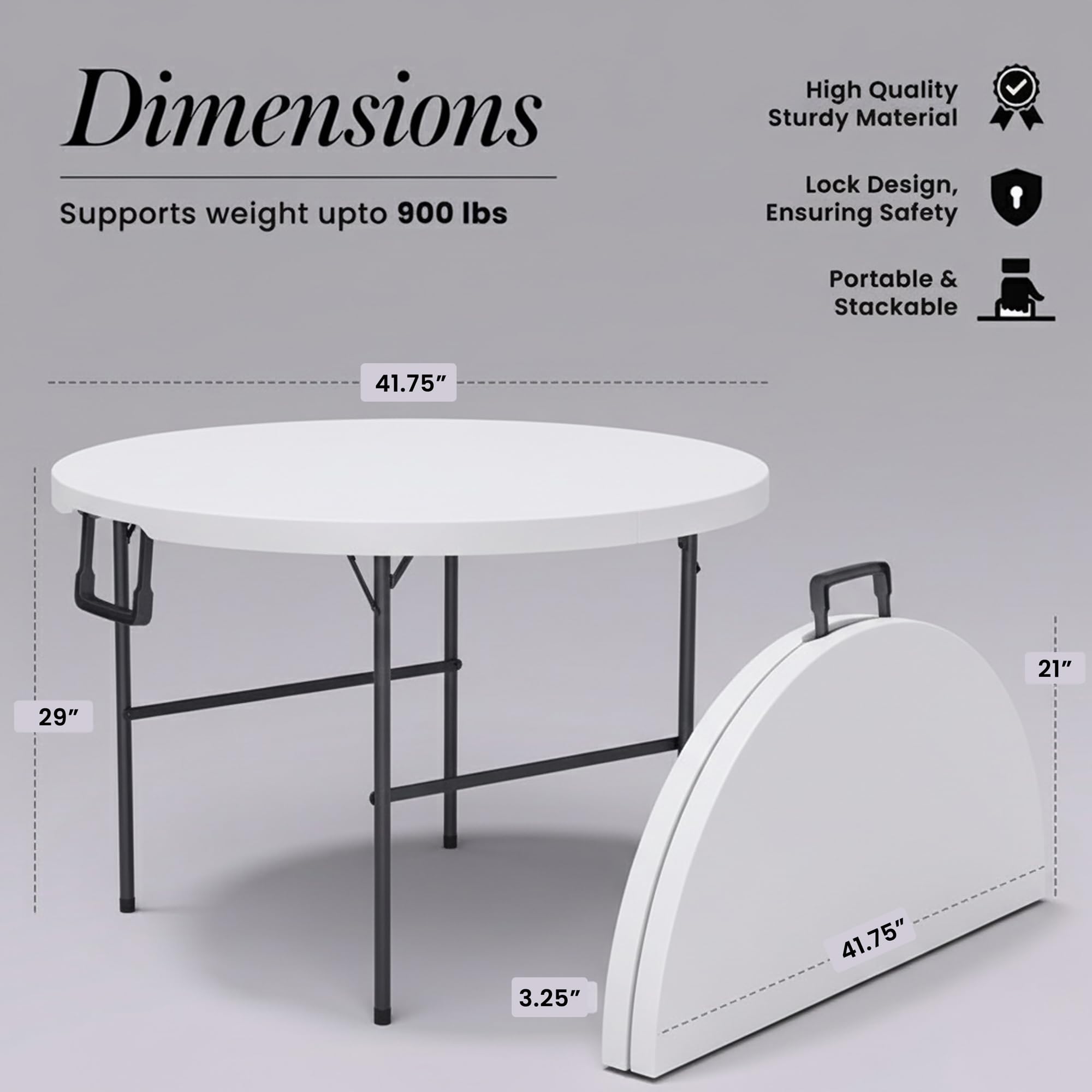 ✅【 Heavy Duty Construction 】Made from heavy duty high density plastic, this table is durable enough to hold anything you place on its table top. Its metal frame is strong enough to support up to 900 lbs ensuring stability and long-lasting use.