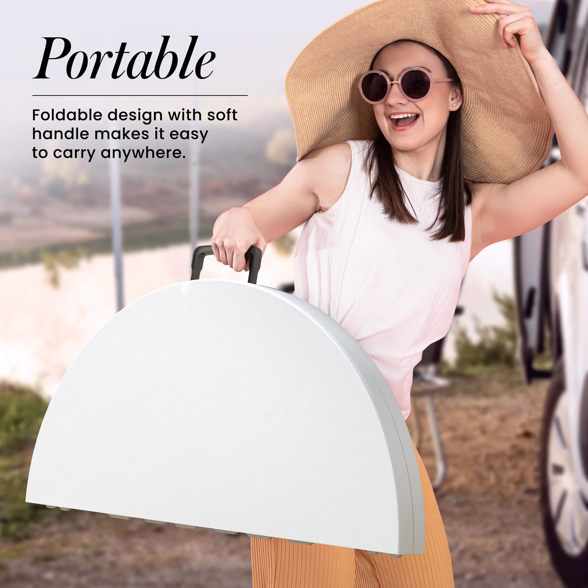 ✅【 Foldable Design 】The tabletop of this table folds in half allowing you to easily carry and transport between locations using the built in handles. Once folded, the table can easily be stored in closets, under beds, or in your car trunk to use for later. Take it anywhere you need – from your living room to a campsite.