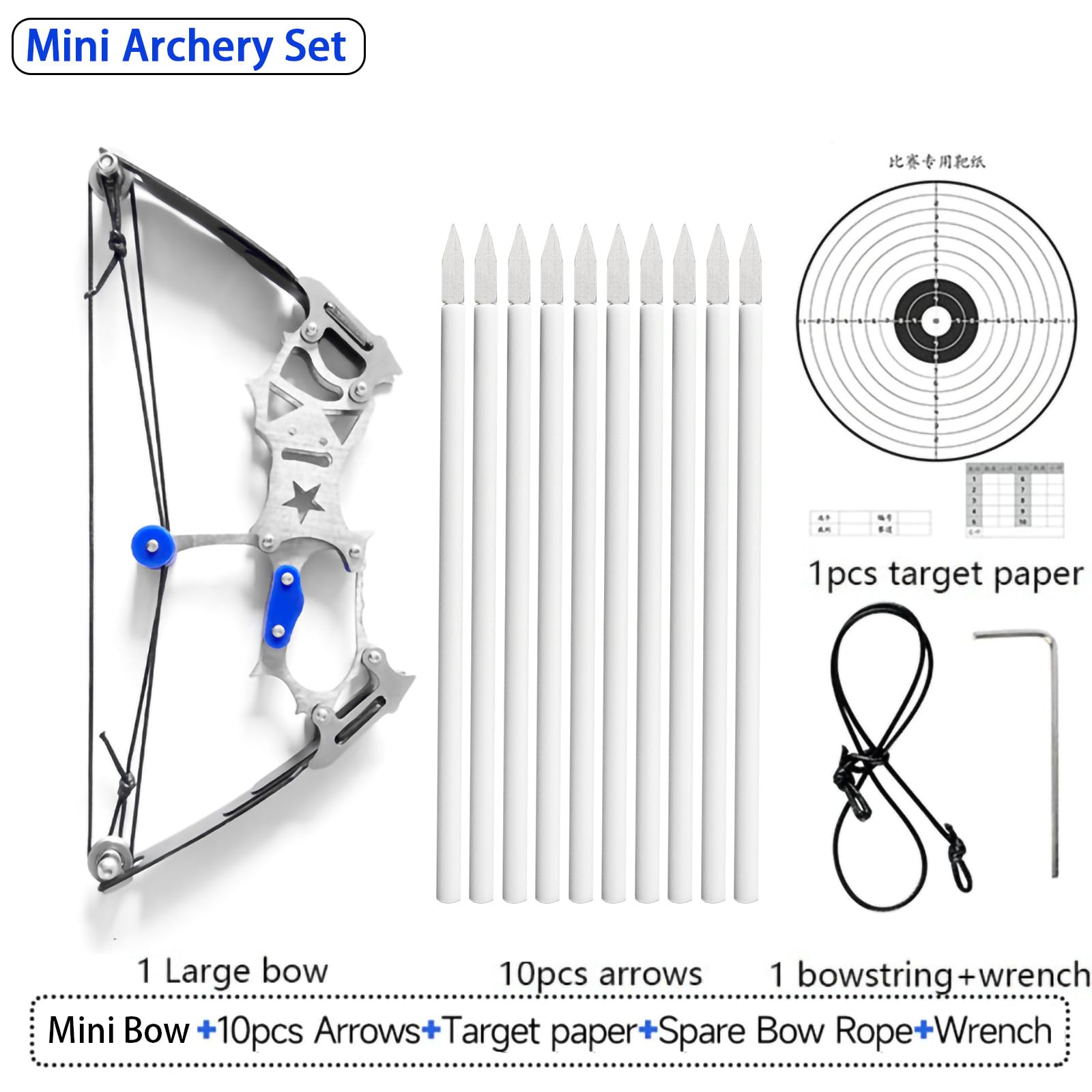 Product includes: 1 bow, 10 arrows, 1 paper target/size:5.5 inches * 2.4 inches * 0.75 inch. Range: 50 feet