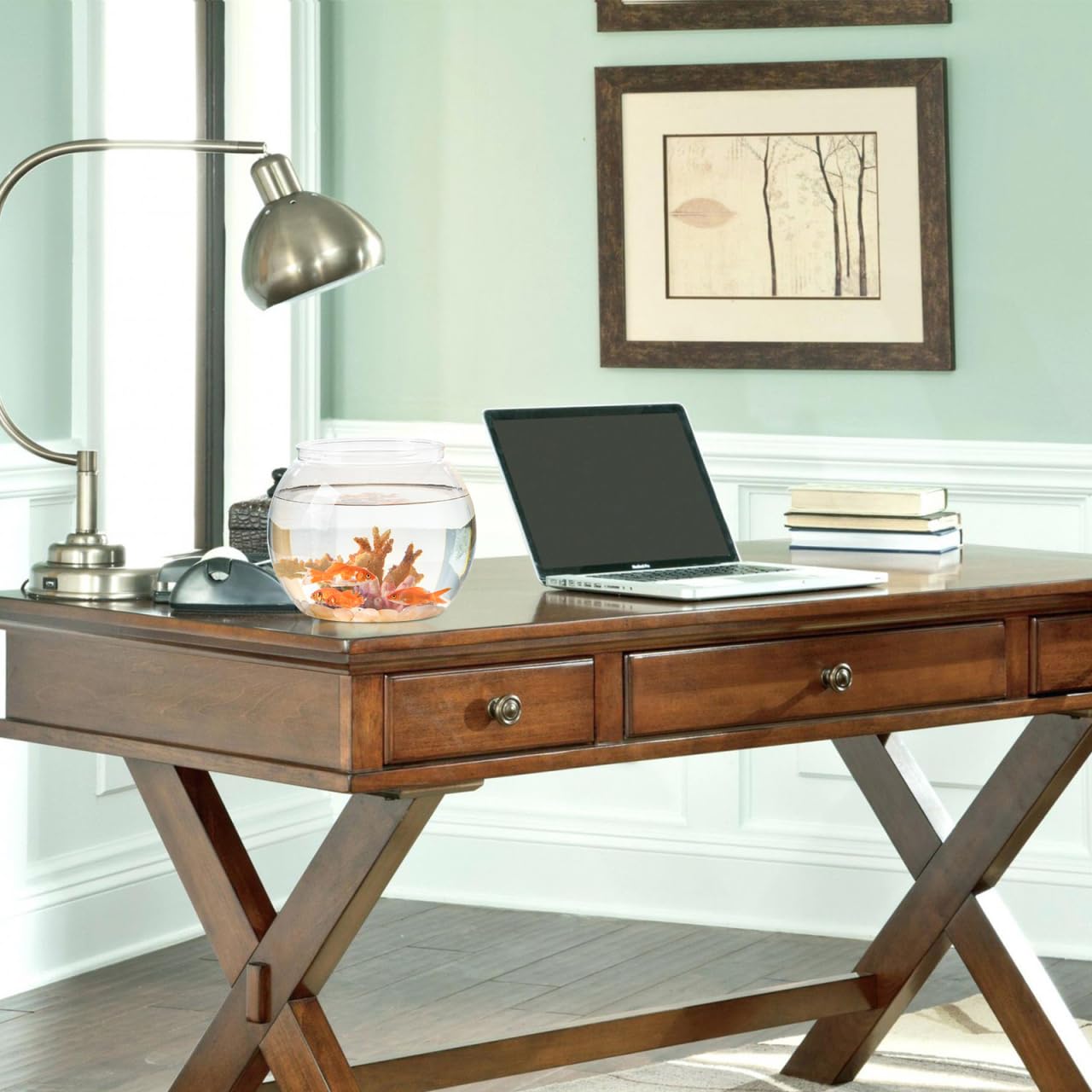 WATER PLANT VASE: A large round fish bowl filled with fresh flowers, silk flowers, potpourri, or decorative marbles. In compact size, the display does not take up too much space