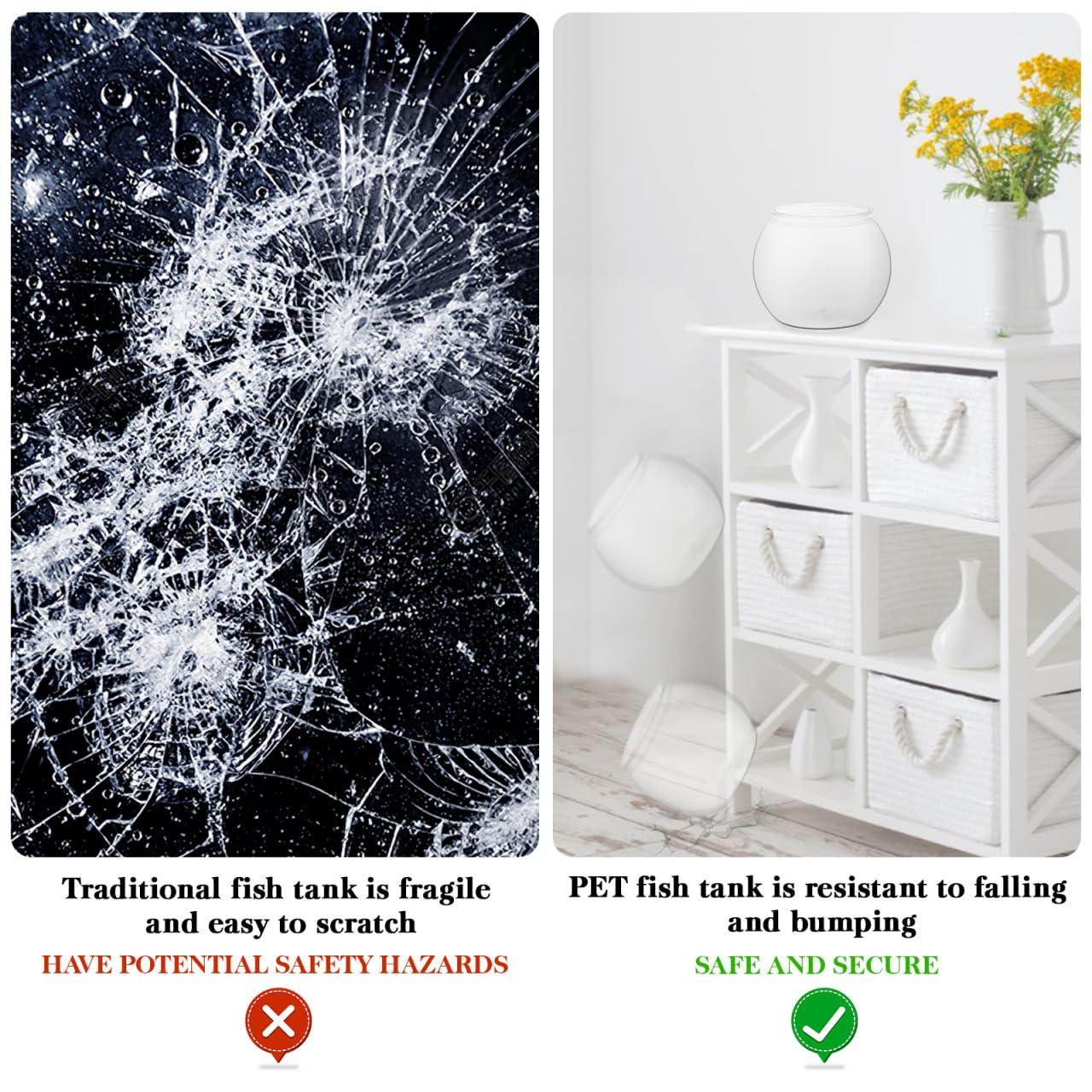 STABLE and RELIABLE: The large goldfish bowl is made of stable PET and is reliable, serving you for a long time