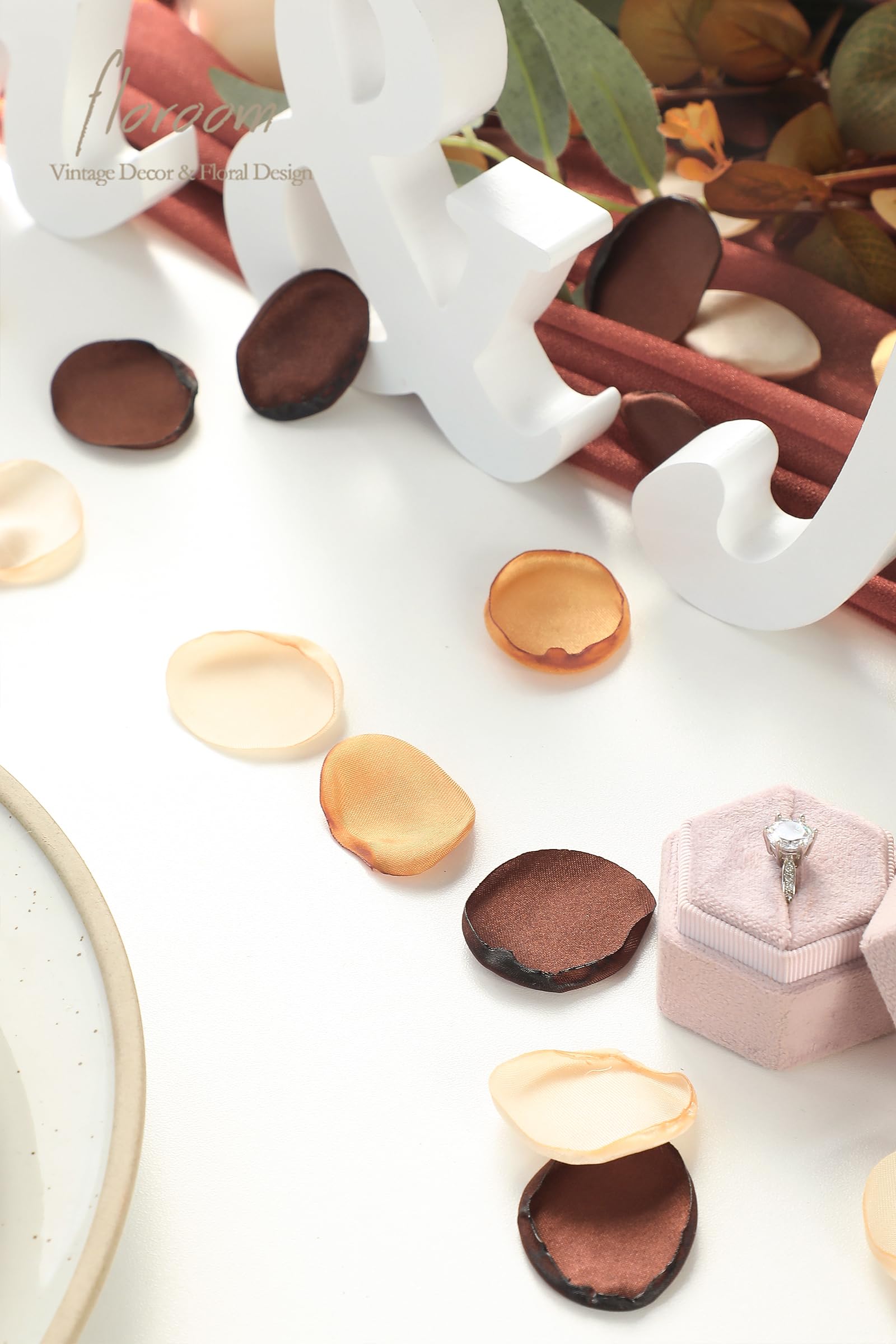 ❤️Color Details: Brown/ Caramel/ Cream. This color combo is designed by Floroom Studio. We also offer solid color petal packs for free combination, enabling you to craft specific accessories matching your wedding decoration.
