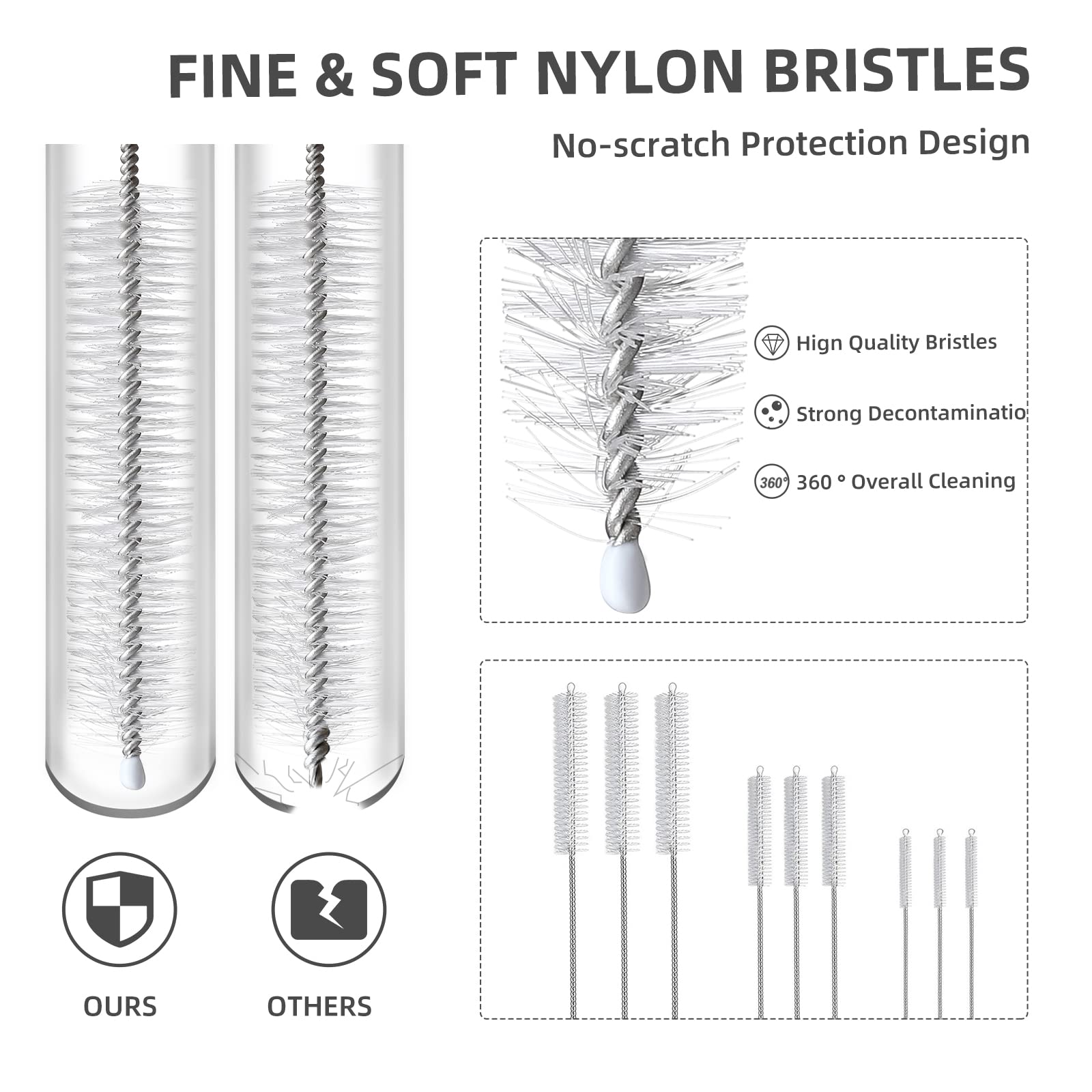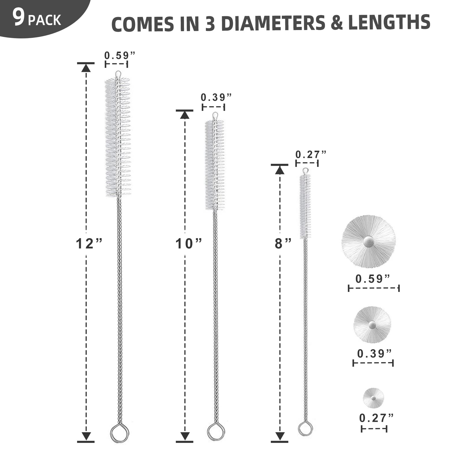 MULTIPLE SIZE – With this set of 9 straws you will get a straw with a diameter of 6 mm, 9 mm and 12 mm, and nylon bristle length of 8 inches, 10 inches and 12 inches. Great for clean your straws on Tumbler, Sippy Cup, Baby Bottles, Tervis, CamelBak, Hydroflasks, Yeti, Starbucks Cup and others.