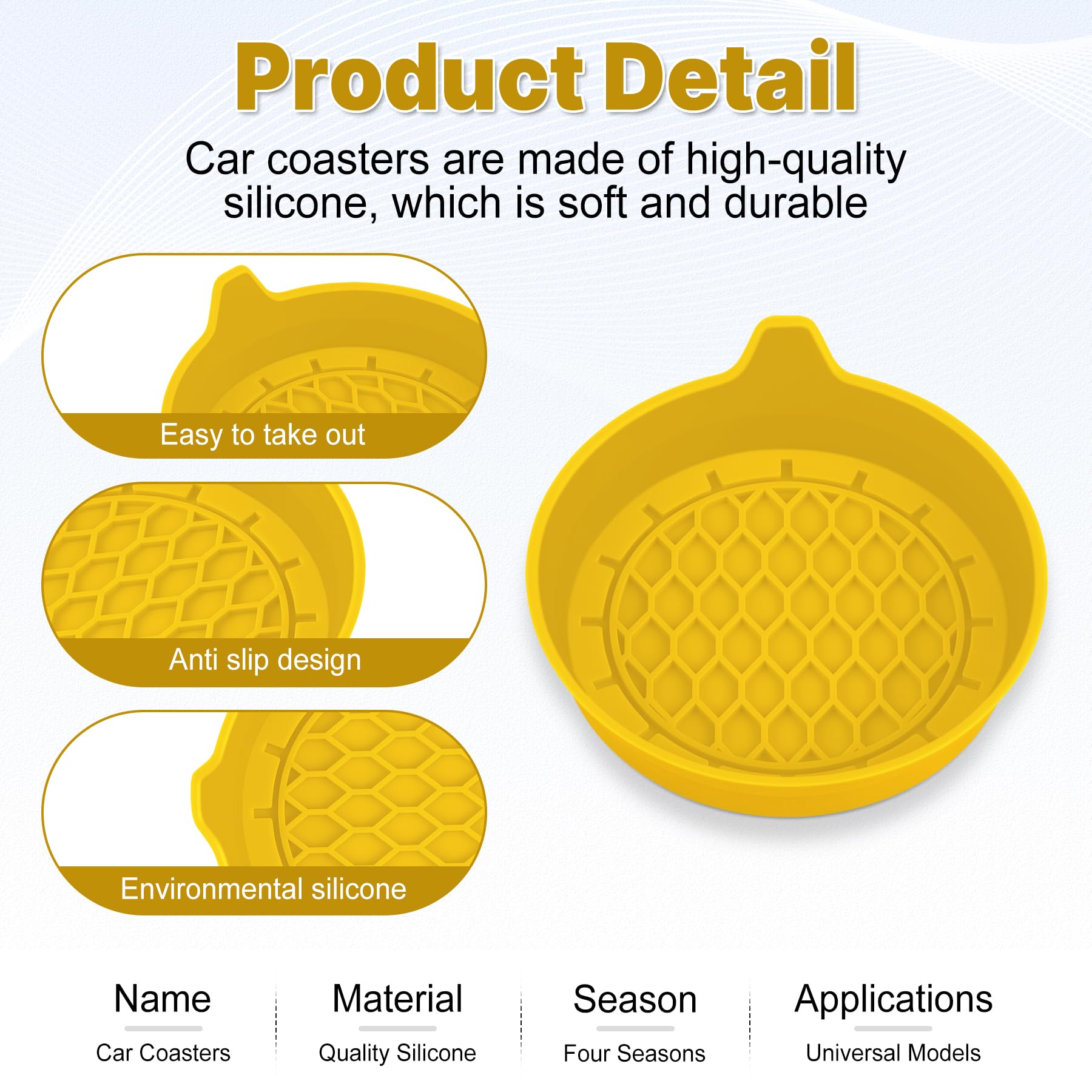 High Quality Material: The coaster is made of environmentally friendly silicone, safe, non-toxic and odorless. Soft with toughness, easily embedded in the cup holder. Very durable, wear-resistant, long service life. High temperature resistance, can withstand 100 ℃ high temperature water cups.