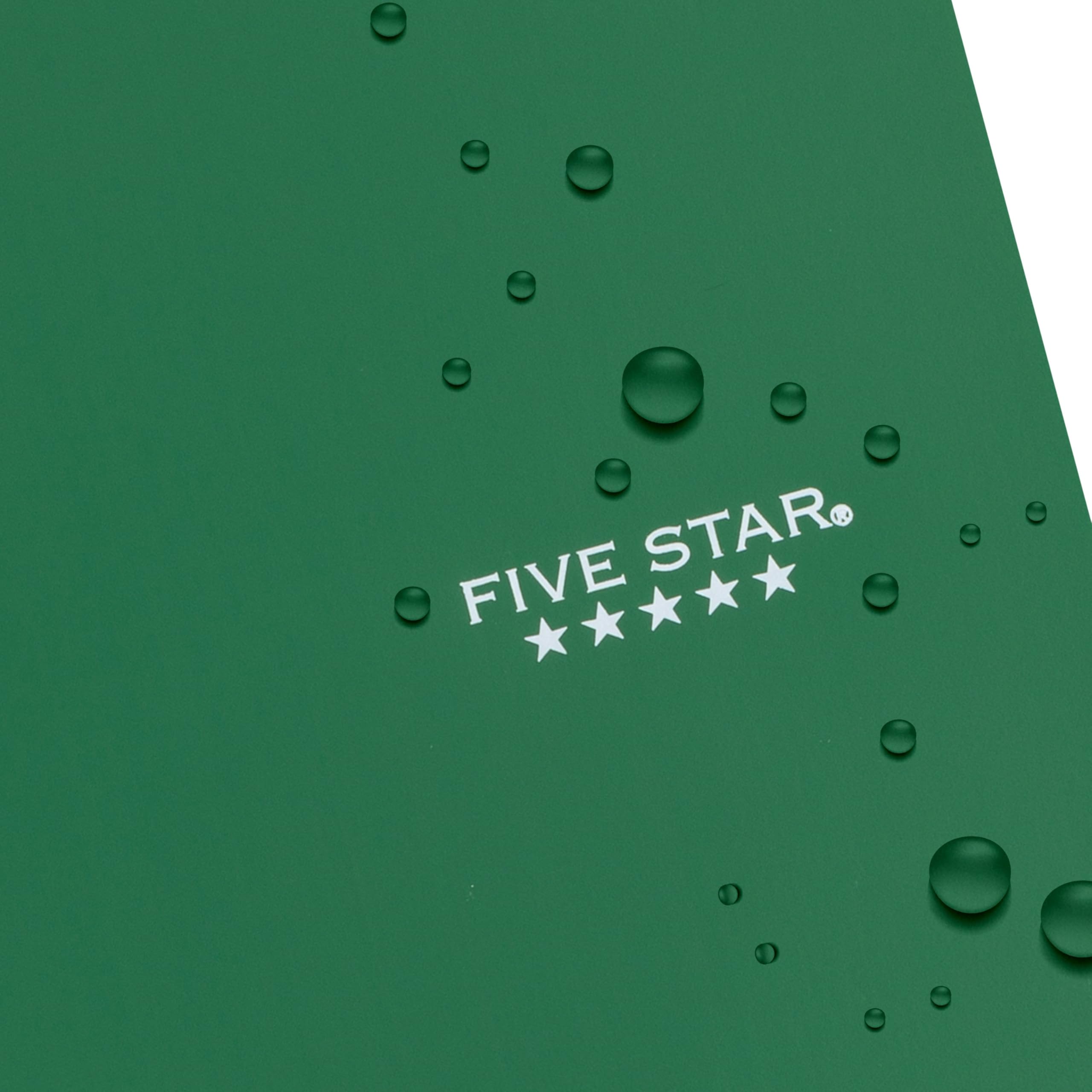 LASTS ALL YEAR. GUARANTEED!* Five Star 5 subject notebook has 200 double-sided, college ruled pages, which are ink bleed resistant.** Notebook features water-resistant plastic front cover and coated Kraft back cover to protect your notes and deliver yearlong durability. 4 dividers, each with 2 pockets, are included and are also reinforced to prevent tearing.*** Neat Sheet perforated pages let you tear out sheets. Spiral Lock wire binding prevents coil snags. 11" x 8-1/2" torn out page size. 11" x 9-1/8"overall size. Green. *ACCO Brands will replace any Five Star notebook that is returned within one year from the date of purchase. This guarantee does not cover damage due to abuse. Contact ACCO Brands Consumer Affairs for instructions.**Under normal usage, paper resists ink bleed with common student writing instruments such as pencils, ball point pens, gel pens, felt tip pens and highlighters.***Based on independent laboratory test results that establish pocket tear strength as compared to non-reinforced pocket in Five Star notebook.