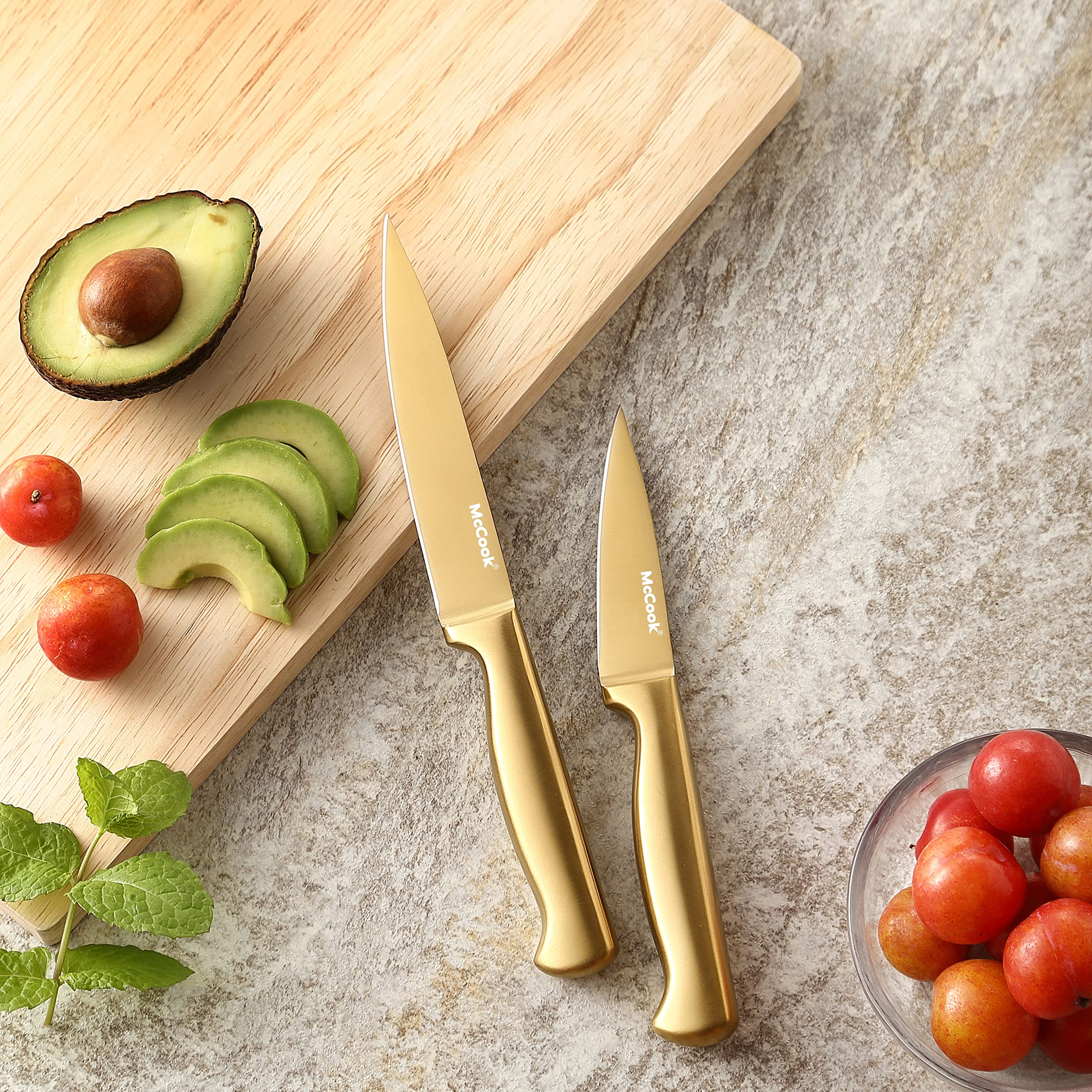 NON-STICK & RUST-RESISTANT – The golden titanium coating prevents the steel from oxidizing, so kitchen knife set will stay non-stick and rust-resistant for years to come. Easy to clean: hand wash for best result.