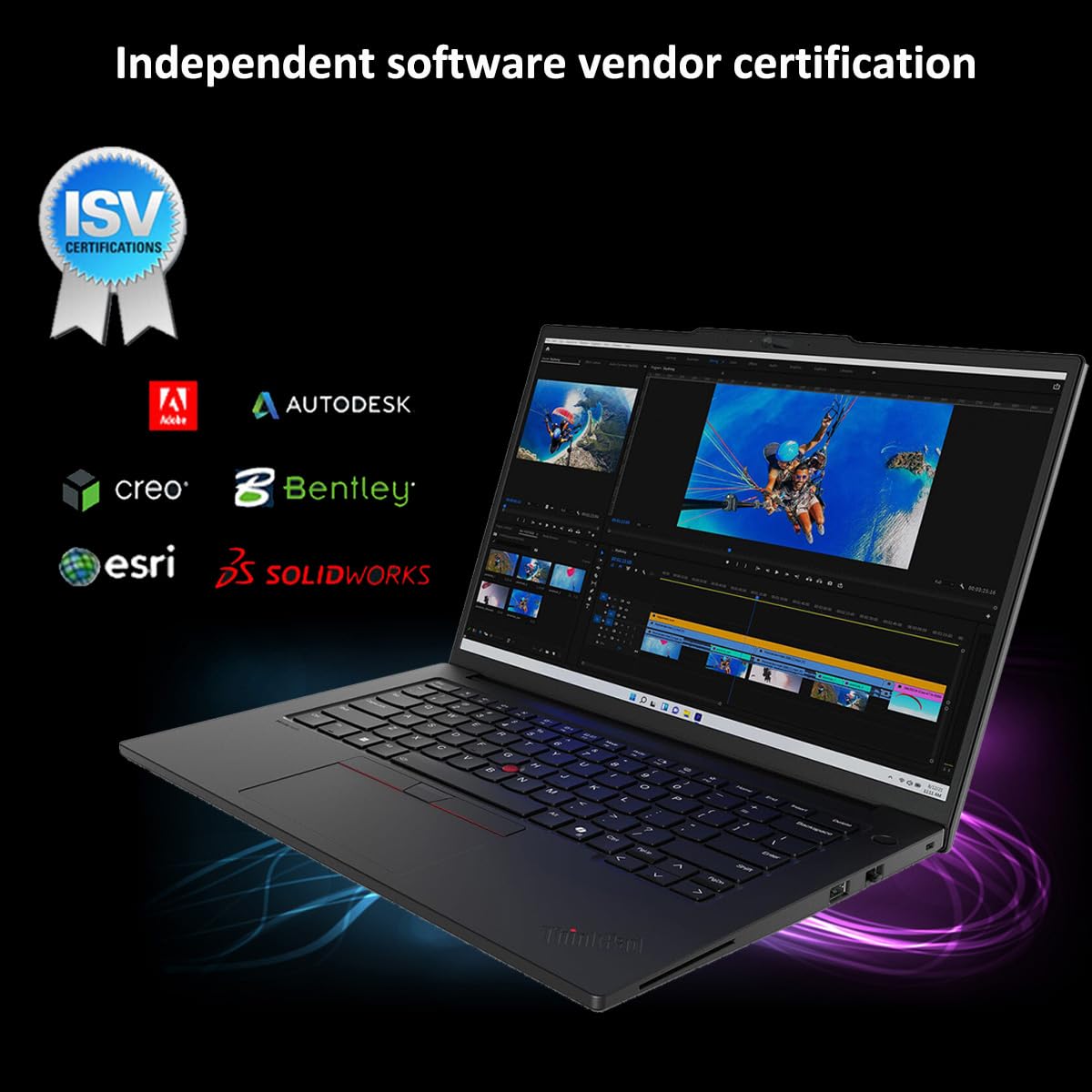 When You Dare to do More With Raw Power Unlock AI efficiency for superior computing prowess with the ThinkPad P14s Gen 5 mobile workstation. Driven by Intel Core Ultra processor with an integrated Neural Processing Unit (NPU), this machine ensures peak performance on the go. While Intel vPro boosts enterprise security, pro-grade NVIDIA RTX graphics simplify heavy workflows. Beyond the Boundaries of Conventional Viewing We’ve redefined the visual experience on the P14s Gen 5 workstation. Its 14.5” screen brightens every pixel for precise clarity. Each display option is antiglare treated and certified for low blue light to prevent eye fatigue. Plus, the Communication Bar atop the screen boasts a hi-res 5MP camera and superior mics for consistent audio-video calls. Break Free, Stay Connected — Anywhere, Everywhere Propel your productivity on the P14s Gen 5 Intel mobile workstation. Its ample ports, swift memory, and uninterrupted connectivity with advanced WiFi capabilities enable you to keep pace with your workflows. Perfect for power users, industrial engineers, and designers, it renders top-tier performance at an economical price. Customizable, Controllable, Unstoppable Our ThinkPad keyboard is redesigned for improved accessibility and greater control. Its enlarged TrackPad offers navigation precision, while the TrackPoint Quick Menu optimizes audio-visual settings with just a double tap. That's not all — its advanced cooling system with dual-fan setup and rear vents guarantee peak thermal performance everywhere. Security at its Finest: Defend, Detect, Deter ThinkShield, our advanced security suite of hardware and software solutions, safeguards your device with data encryption and biometrics. Additionally, AI-powered Intel Threat Detection technology helps prevent ransomware, cryptojacking, and more. When it comes to security and protecting your assets, we’ve got you covered! Technical Specifications Display: 14.5" 3K (3072 x 1920), IPS, Anti-Glare, 120Hz, 100%DCI-P3, 430 nits Display Processor: Intel Core Ultra 7 155H Processor (16 Cores, 22 Threads, 24MB Cache, Max Turbo up to 4.8GHz) Graphics: NVIDIA RTX 500 Ada Generation GPU 4GB GDDR6 Memory: 64GB DDR5-4800MT/s (2 x 32GB) Storage: 2TB PCIe NVMe M.2 SSD Networking: Intel Wi-Fi 6E AX211 (2x2) + Bluetooth 5.3 Operating System: Windows 11 Pro 64-bit Battery: 3 Cell Li-Polymer 75 Wh, 135W AC Adapter Webcam: 5MP RGB+IR with Privacy Shutter Keyboard: Backlit, Black - English (US) Audio: 2 x 2W speakers, Dolby Audio, Dolby Voice, Dual-array mics Security: TPM 2.0, Fingerprint Reader, Facial Recognition Dimensions: 0.73” x 12.81” x 8.96” Weight: 3.55lbs I/O Ports 2 x Thunderbolt 4, USB 40Gbps with power delivery & DisplayPort 2.1 2 x USB-A (USB 5Gbps) (1 always on) Ethernet (RJ45) HDMI 2.1 Headphone / mic combo