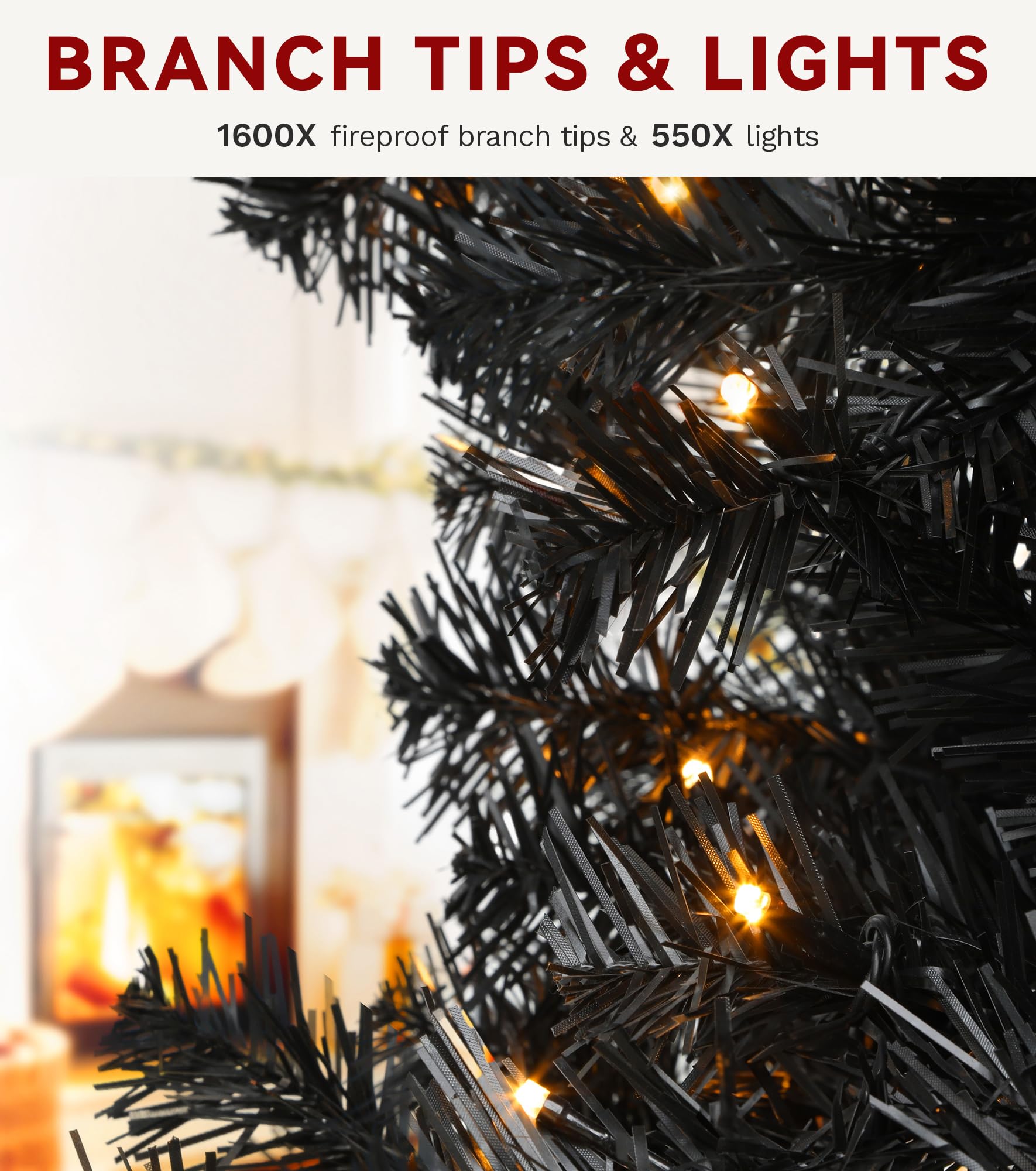 Full Classic Appearance: High-quality flame resistant PVC crafts a lifelike black Halloween tree featuring durable pine needle-inspired design with 3D texture for shed-resistant black that enhances your holiday ambiance