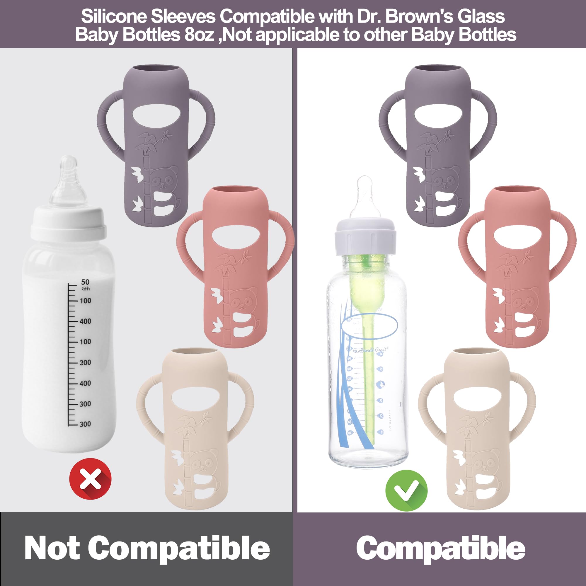 Unique Designed for Baby Bottles - The silicone sleeves for Dr. Brown's Baby Bottles can against drop down,bumps and scratches. These are a must essential product for using glass baby bottles. They provide a more sturdy protection for glass baby bottle from breaking if dropped, which also unique handle design shape make it easier to grip and hold