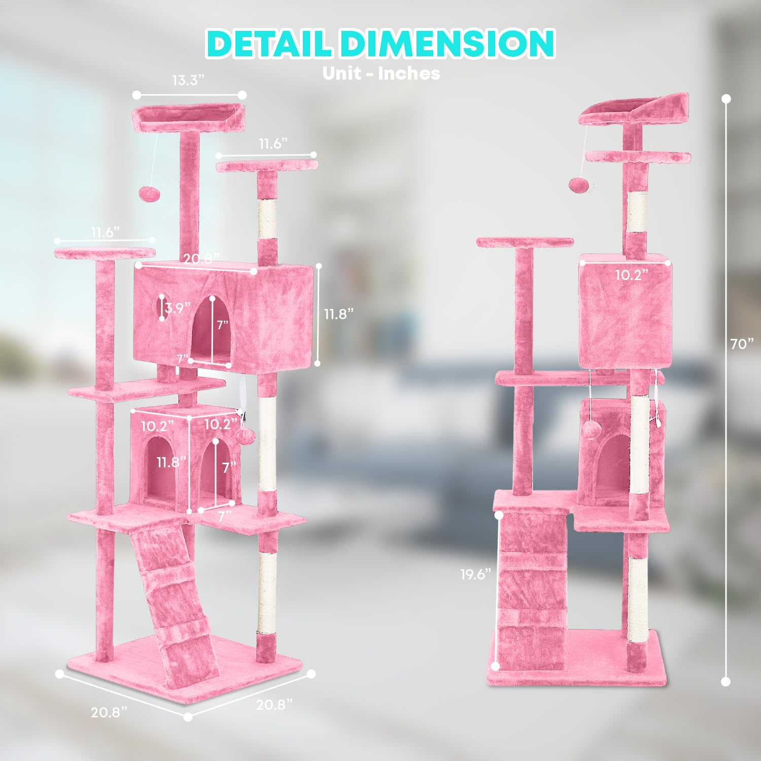 Our towering haven of a cat tree, with its finely detailed construction, offers your cherished companion the ideal balance of activity, comfort, and repose. This multi-level masterpiece, standing tall and robust, is made to fulfill all of your cat's innate impulses. Our cat tree offers a variety of inviting features to keep your pet happy and occupied for hours on end, from comfortable hideaways for seclusion and relaxation to plush perches for relaxing and surveying their territory. In addition to providing a safe haven for scratching, its scratching poles are covered in sturdy sisal rope, protecting your furniture from needless abrasion. Because of its modular form, which makes installation and modification simple, it blends in perfectly with any living area while bringing a touch of charm and elegance. Every cat lover's dream home must have a Cat Tree because it offers the ideal haven for your cat, whether they are playing, lounging, or just curled up for a good night's sleep.Cat Tree;Cat Tower;Cat Scratching Post;Cat Tower for Indoor Cats;Cat Tree for Indoor Cats