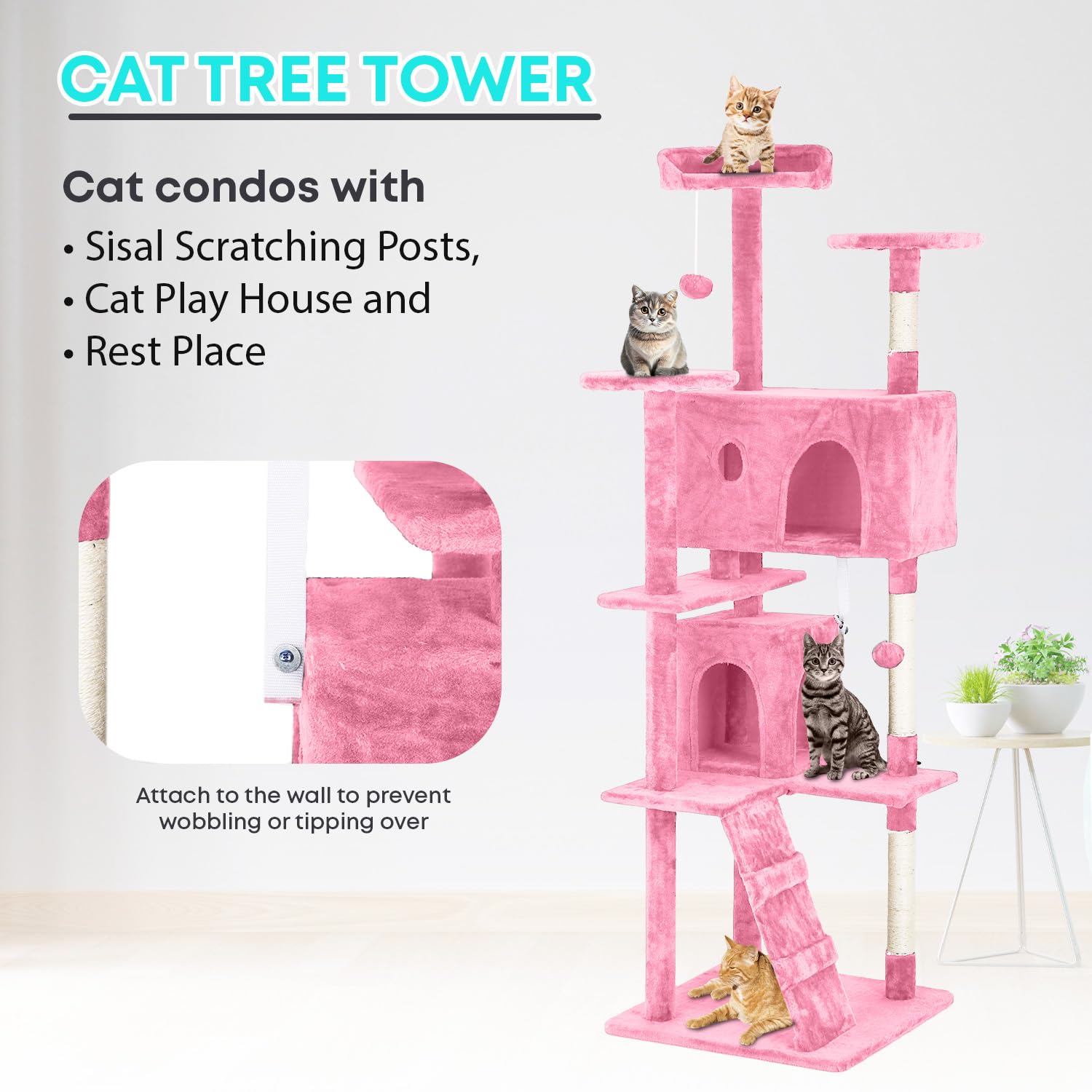🐱 【Stable Construction】Our Cat Tower is made of high-quality particle board with skin friendly plushy faux-fur cover to keep your cat warm and comfortable. The cat activity tree has a wall anchor strap which provides a good double security protection. You don't have to worry that the cat tree will overturn or shake accidentally.Give your cat the best protection!ideal for average kittens and cats.