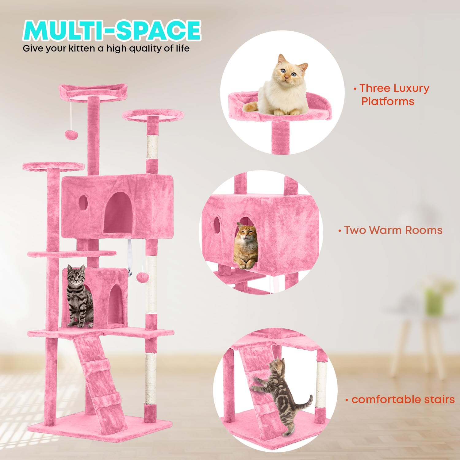 🐱 【Multifunctional Activity Center】The cat Tree provides 3 top perches platforms and two cozy condo. Whether your kitten wants to stretch out on a spacious perch, curl up in a plush hole room, or release the urge to scratch on a sisal pole, this multifunctional cat tree tower works perfectly as a recreation paradise,which can make your fur baby's day full of fun and excitement!two toys gives them a unique way and Fun to play!