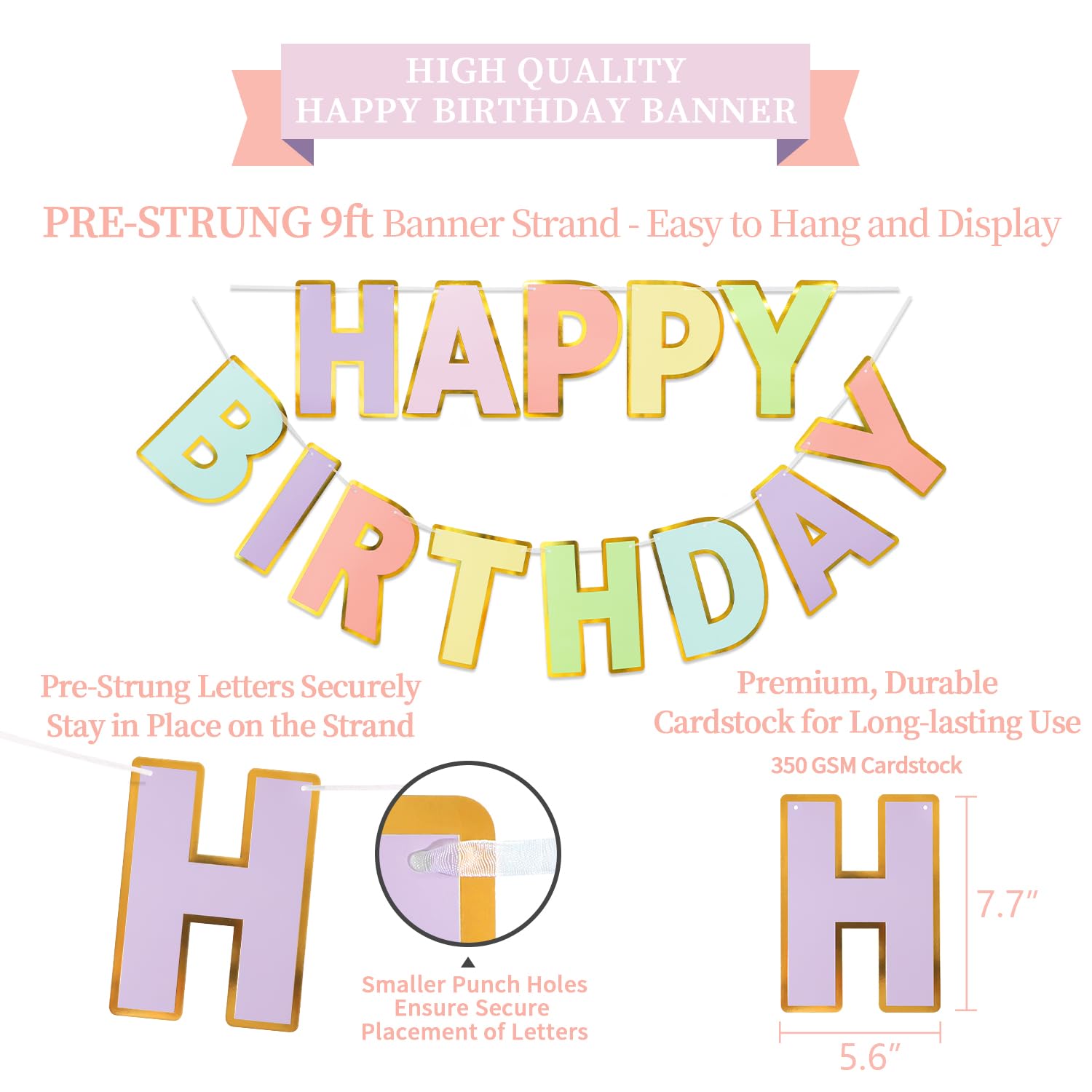 Complete Set: Includes PRE-STRUNG happy birthday sign, circle dots paper garland, hanging swirls, and honeycomb balls for a stunning finishing touch to your birthday party decorations. Versatile for every age