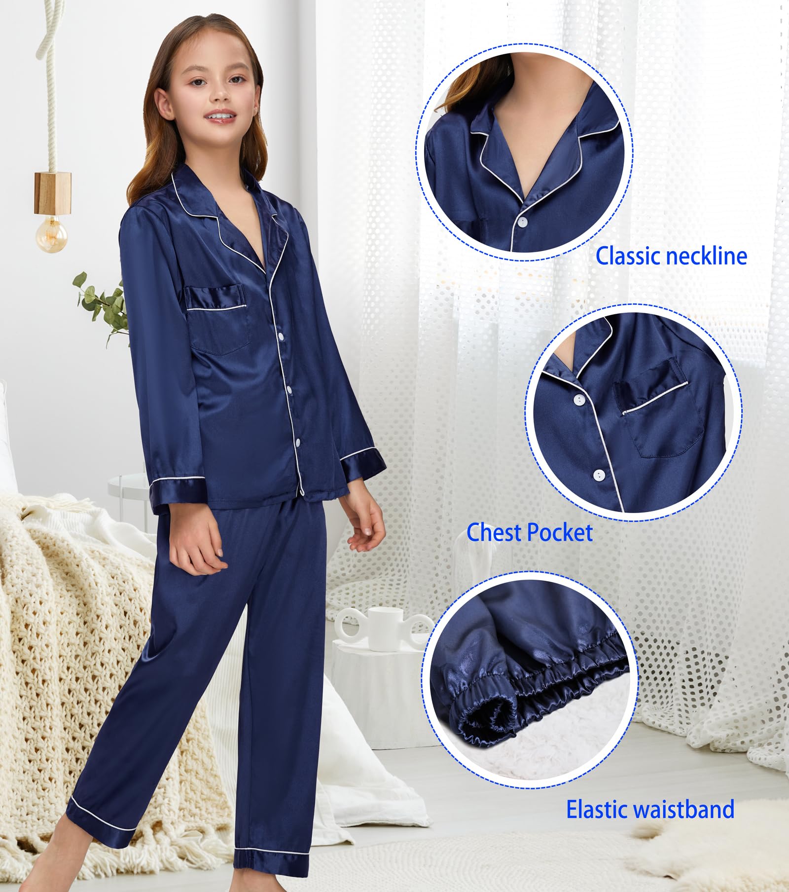 These kids satin sleepwear for girls are suitable for casual wear, sleepwear, nightwear, slumber or pajama party, perfect birthday gift for kids.