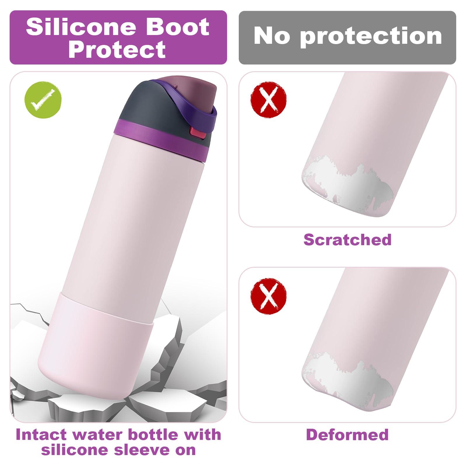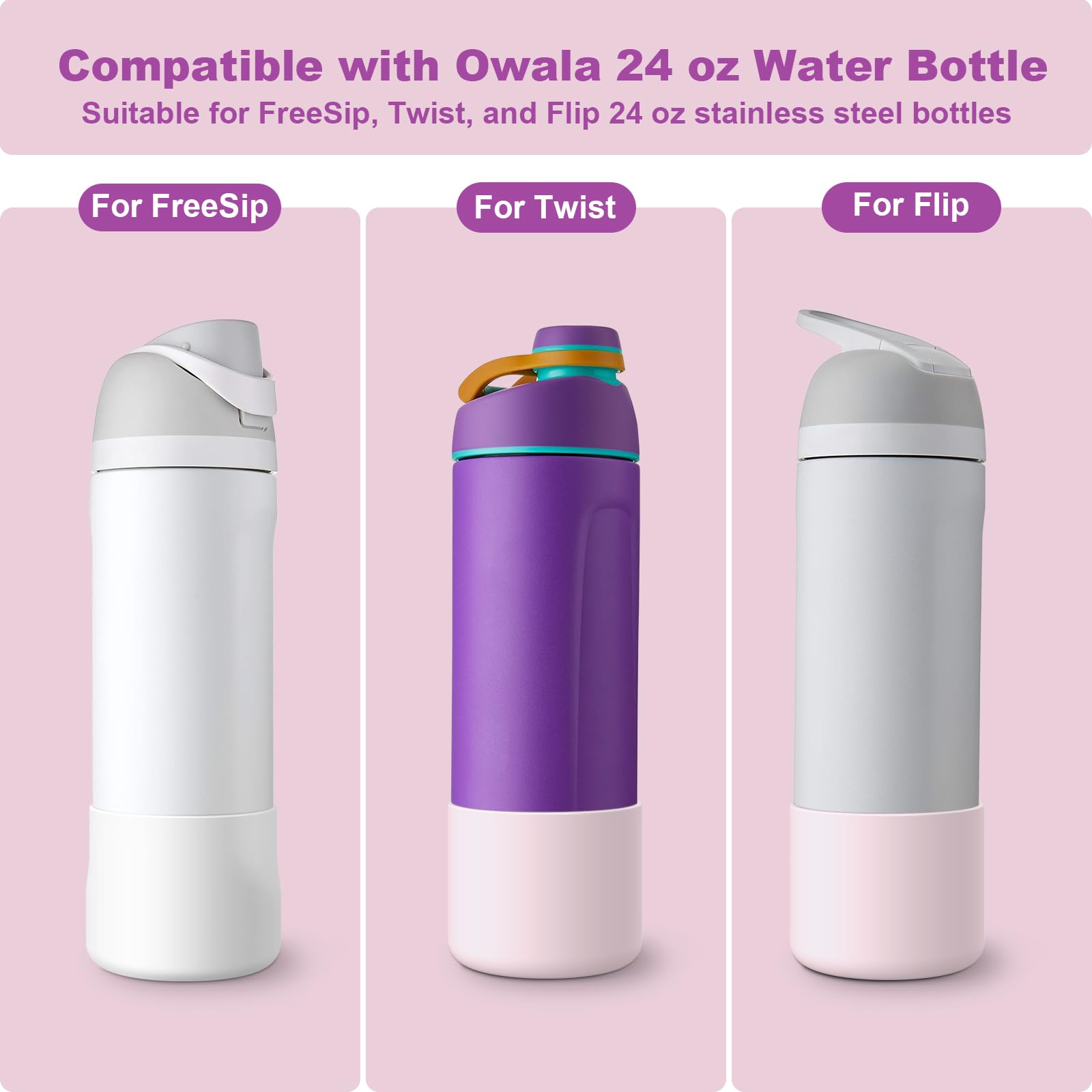 【Perfect Compatiblity】The silicone boot is suitable for Owala 24oz FreeSip, Twist, and Flip stainless steel water bottles. It is precisely made according to the size of the original cups, which perfectly fits the cup bottom and won't fall off easily.