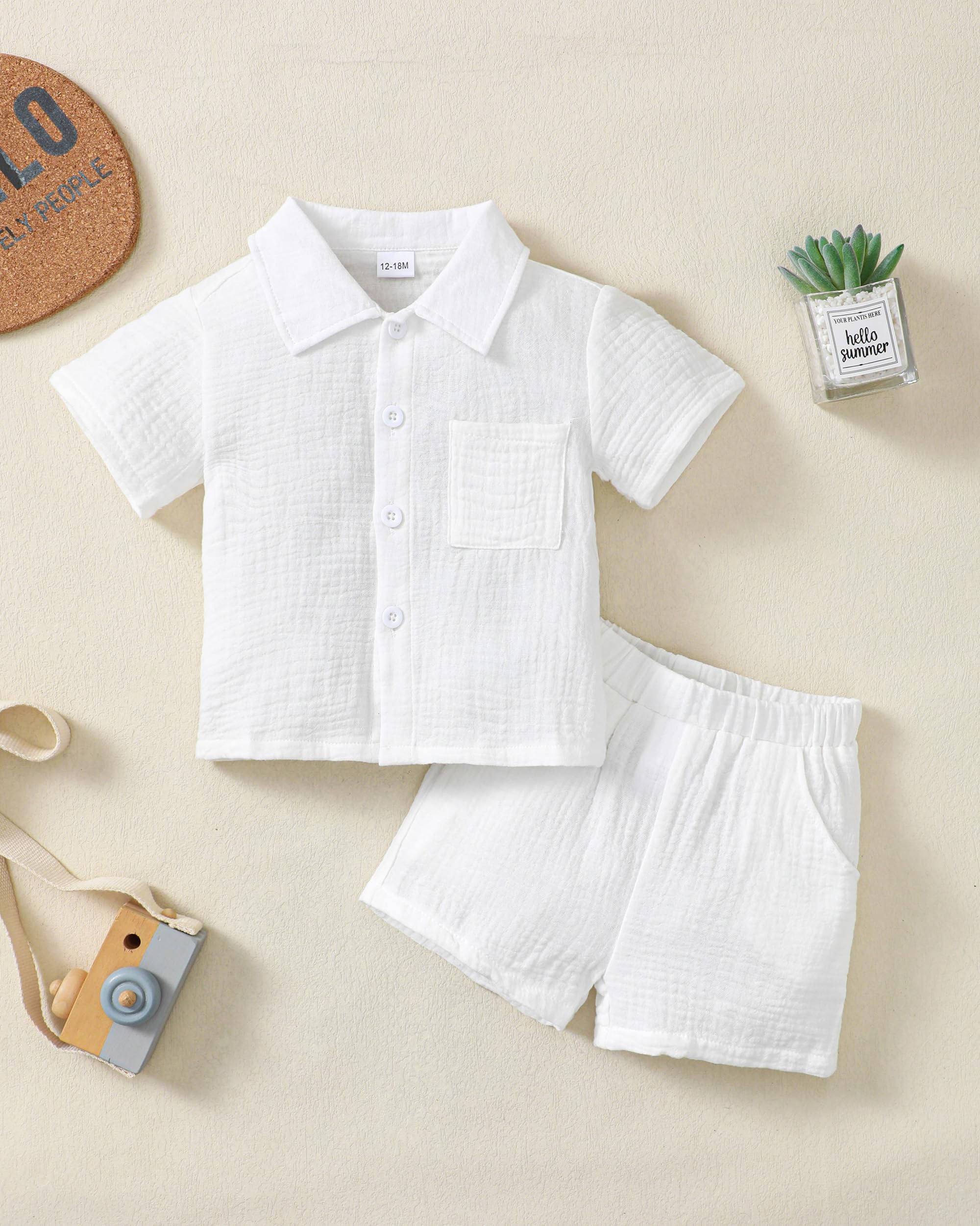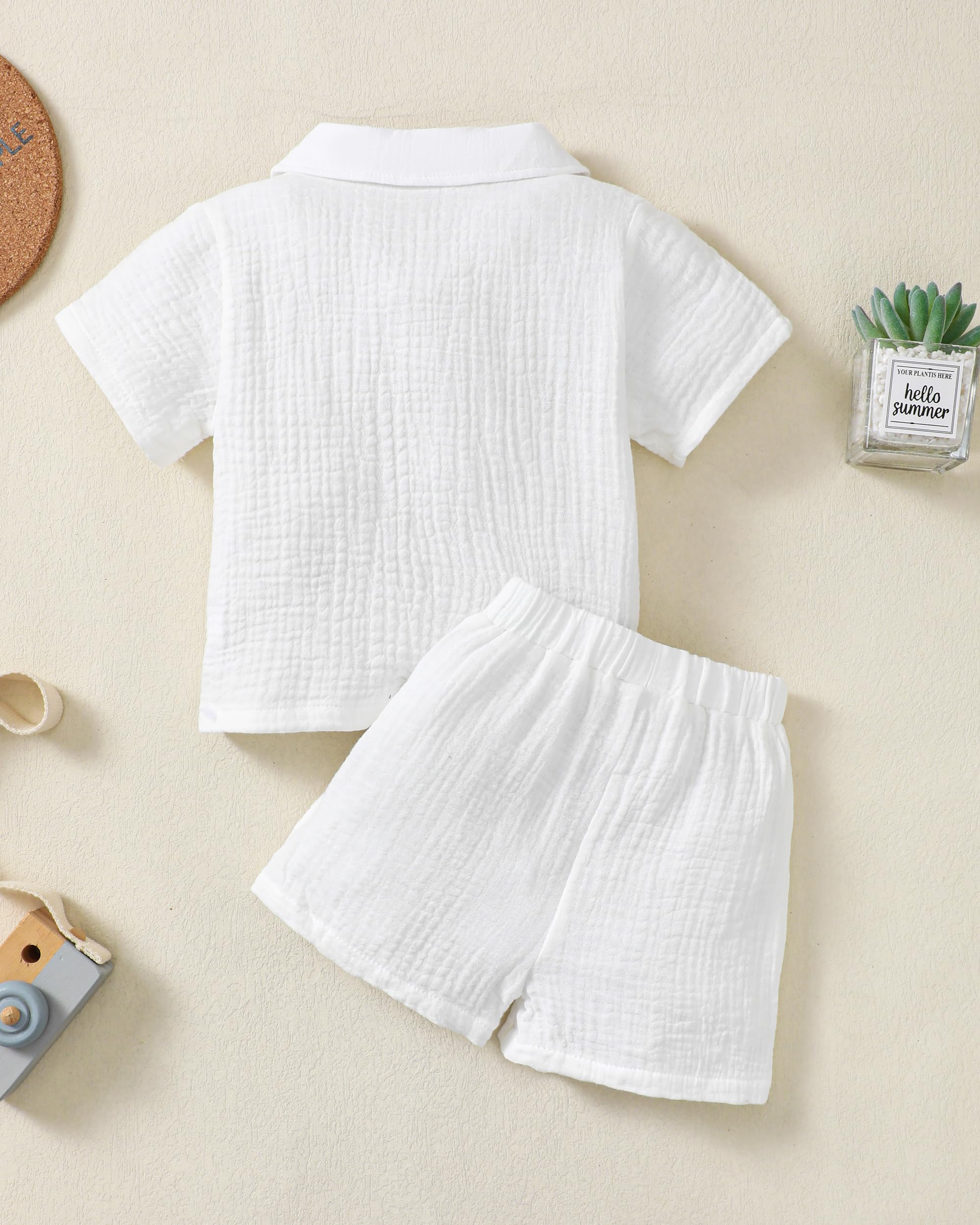 Stylish Design--Cute baby boy outfits with classic collar, cute and fashion to wear. Wide elastic waistband short pants, neither tight nor loose, suitable for indoor or outdoor activities. Your little boy deserve to own one!