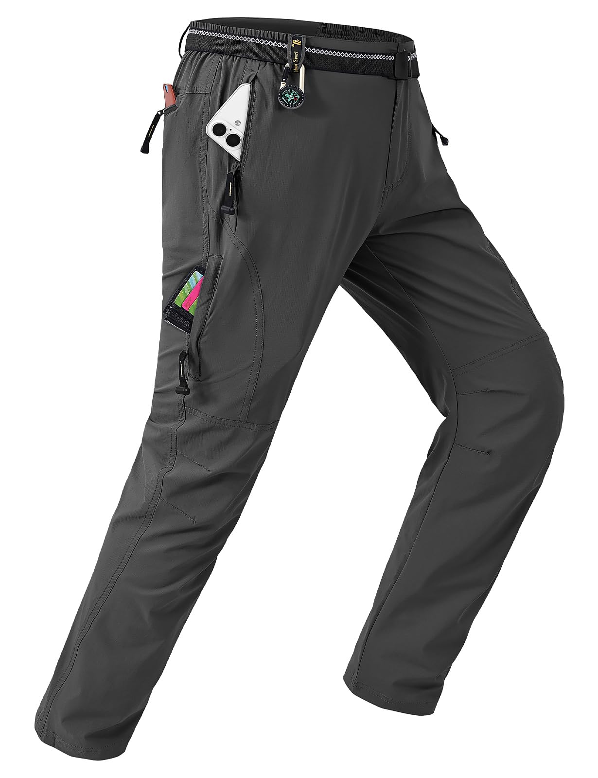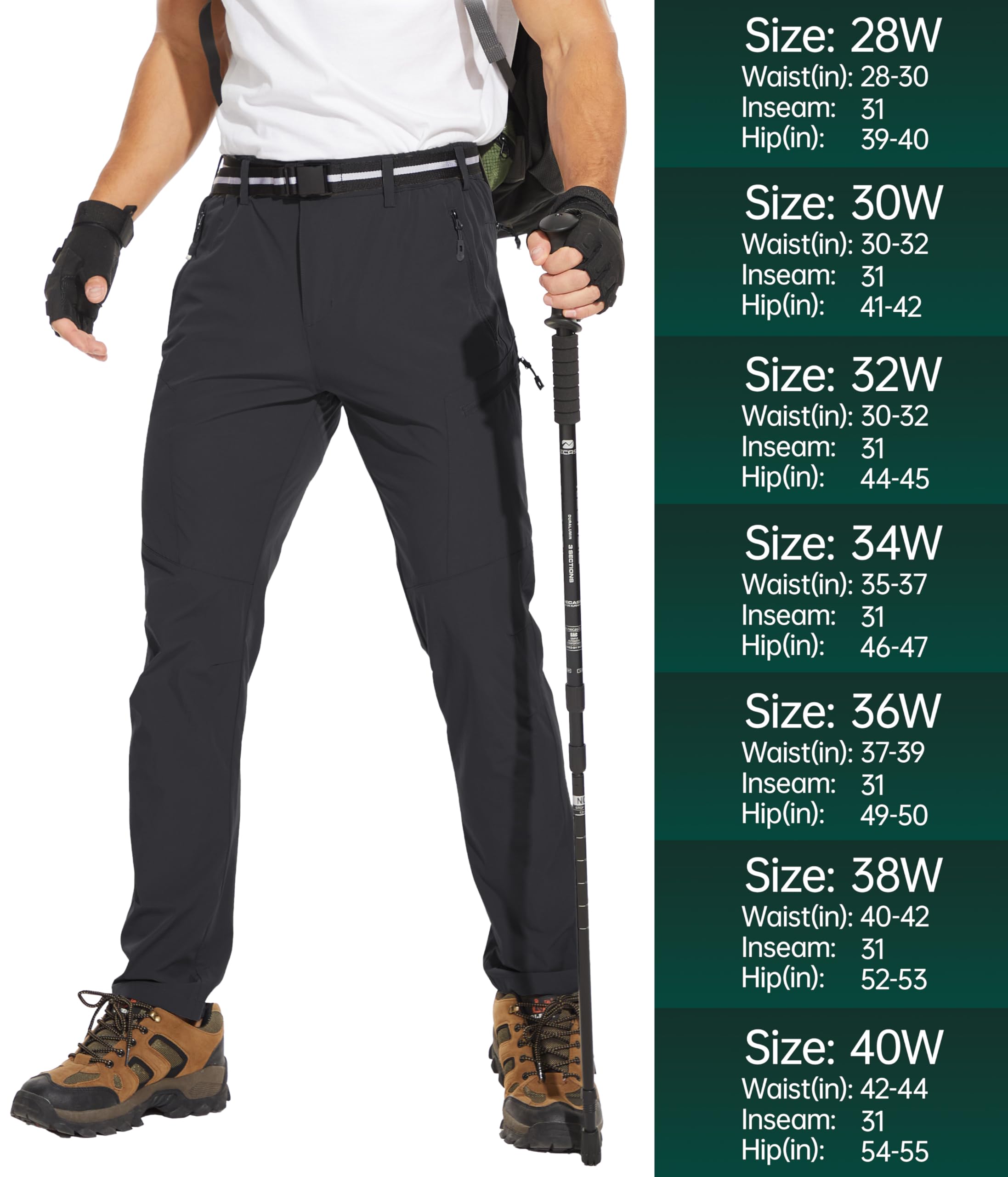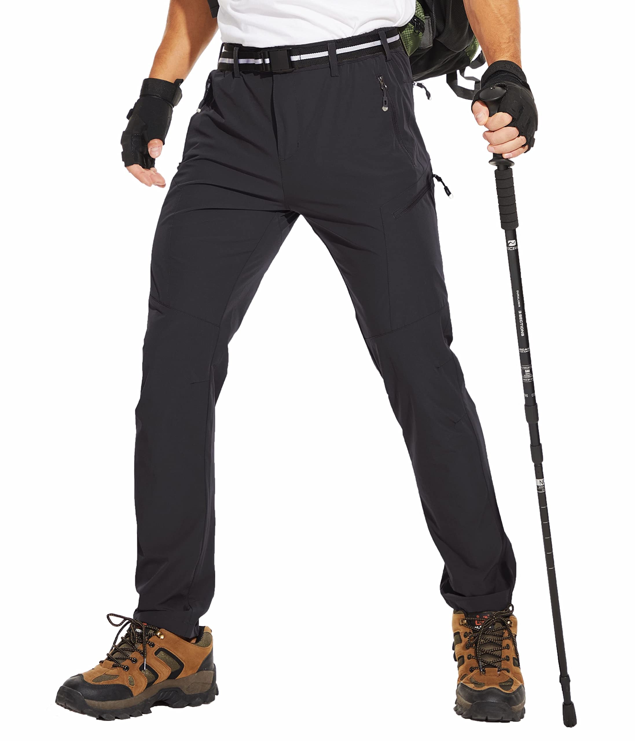 【Stretchy & Quick Dry Material】Our travel pants for men are made of durable material, which is 4-way stretch, quick dry and water resistant. No more annoyance of moisture when hiking with these waterproof hiking pants men
