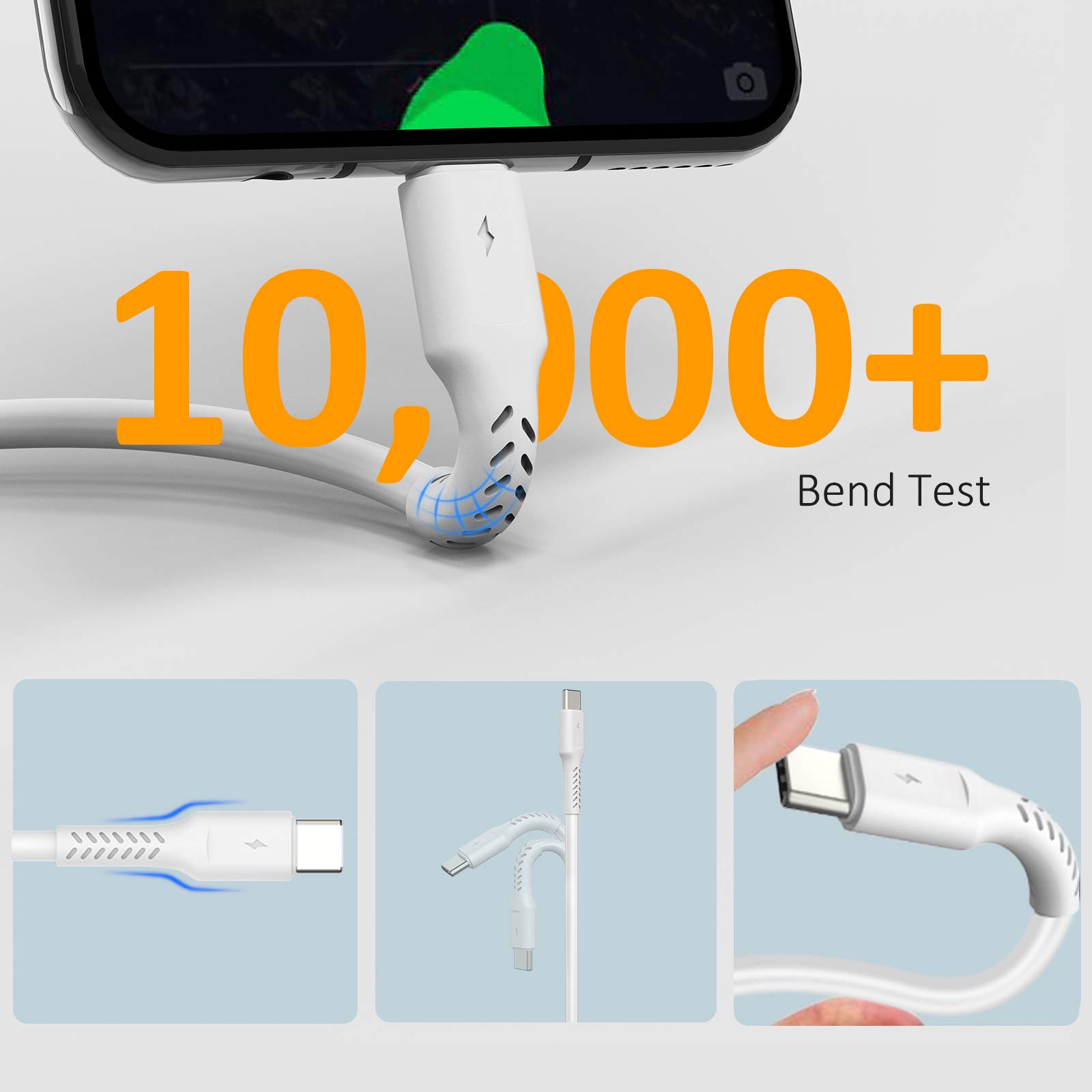 ✅ PORTABLE LENGTH: 30 cm long for charging your phone with power bank or power station; anti-tangling, easy to carry. This USB C cable can bear 10000+ bending test, and more durable.