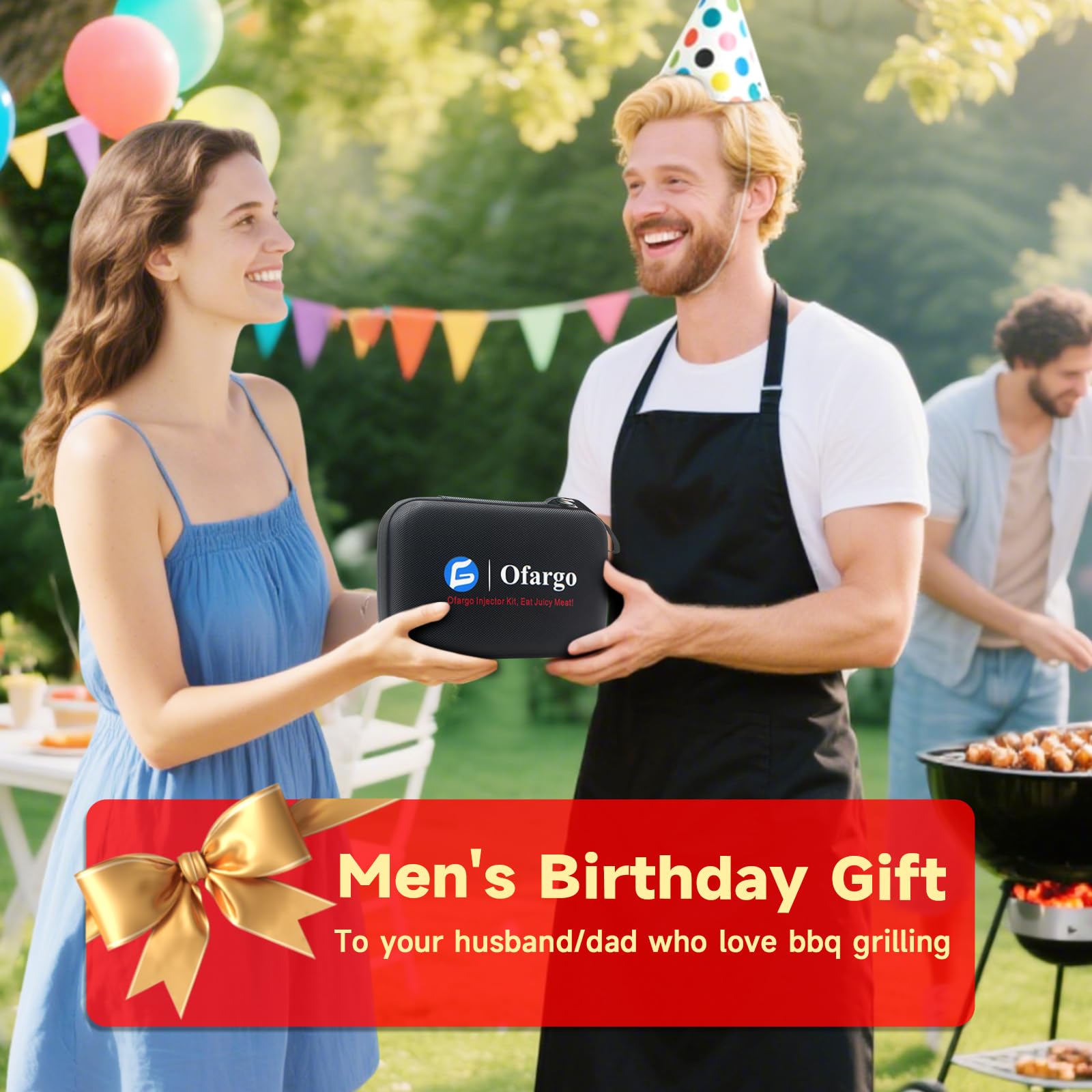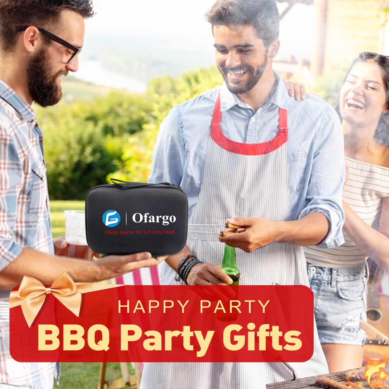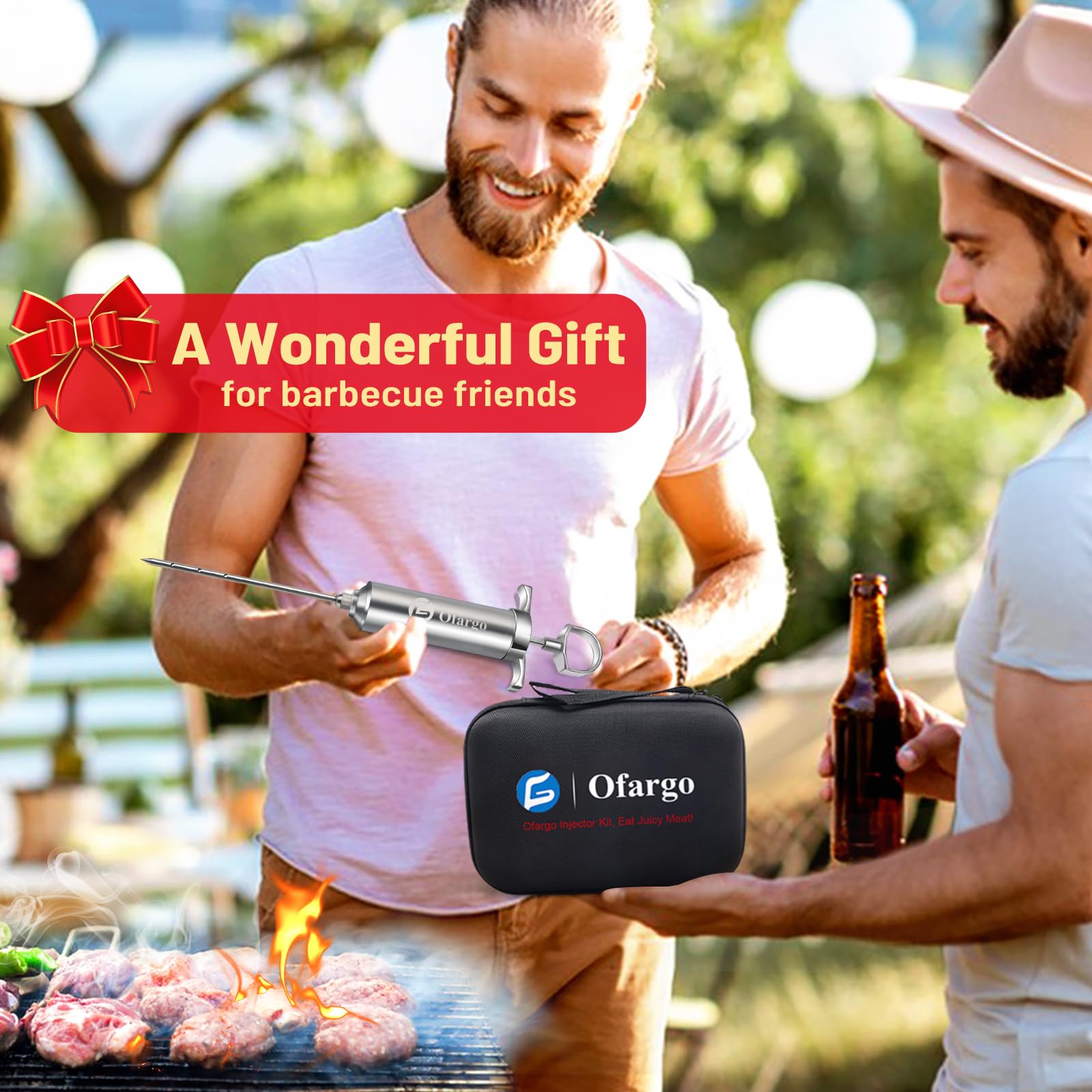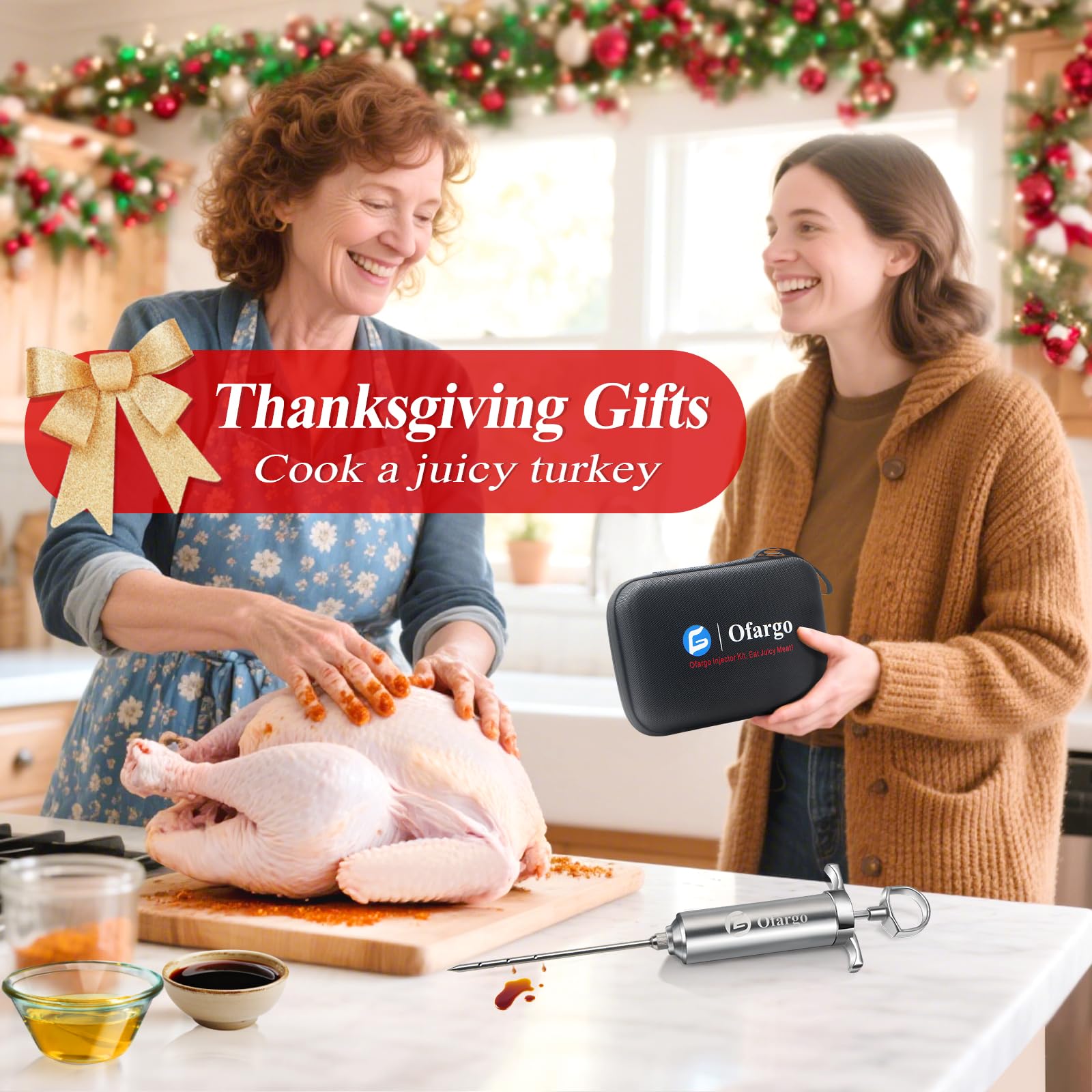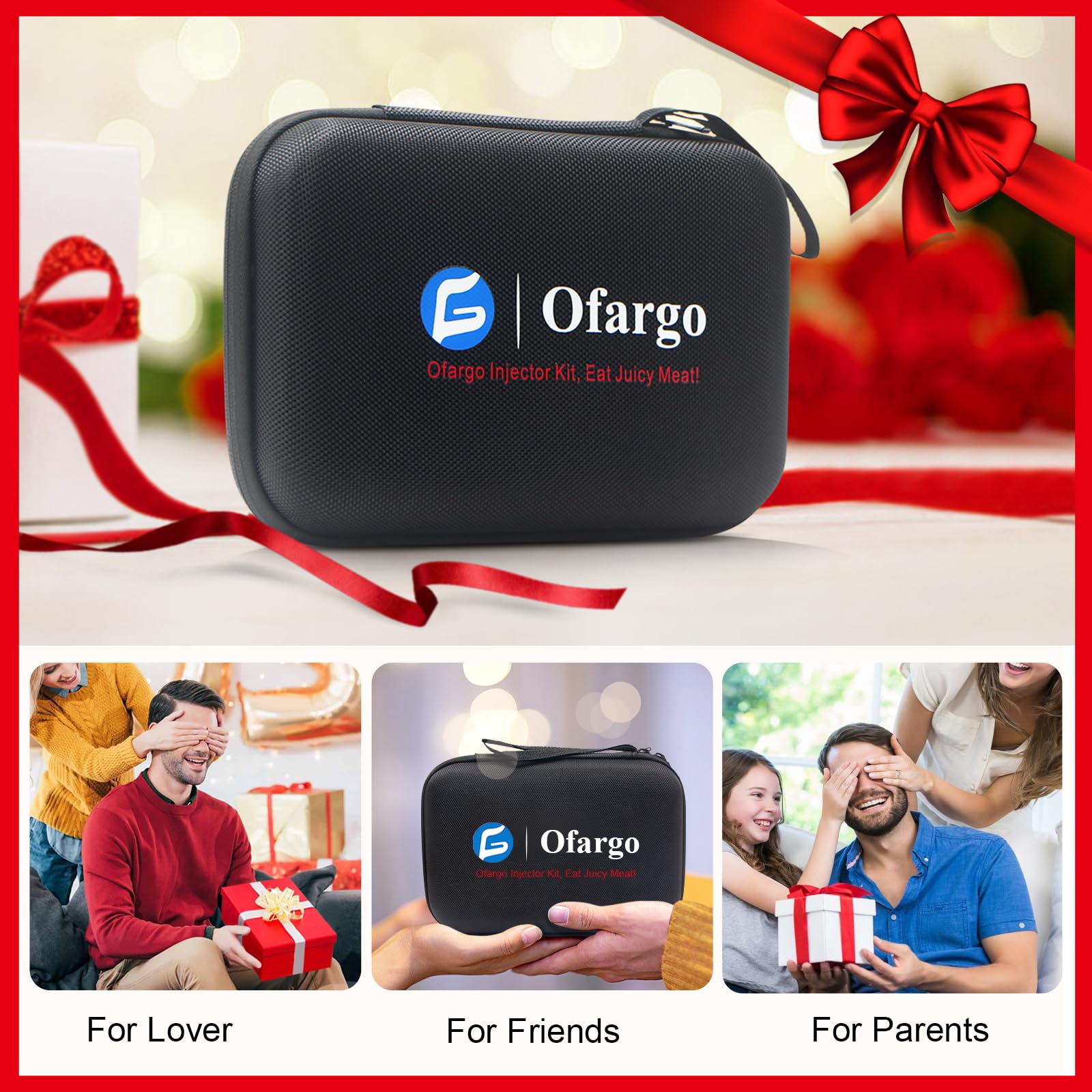 JUICY TENDER & YUMMY for EVERY BITE: Ofargo food injector is solidly built to last to intensify flavors of Thanksgiving Christmas turkey, beef brisket, pork, lamb, chicken, goose, duck; inject jelly pudding into donuts, rum into strawberries, brine into home-cured meats; practical for kitchen tools, holidays, BBQ, grill, family party, bonfire party
