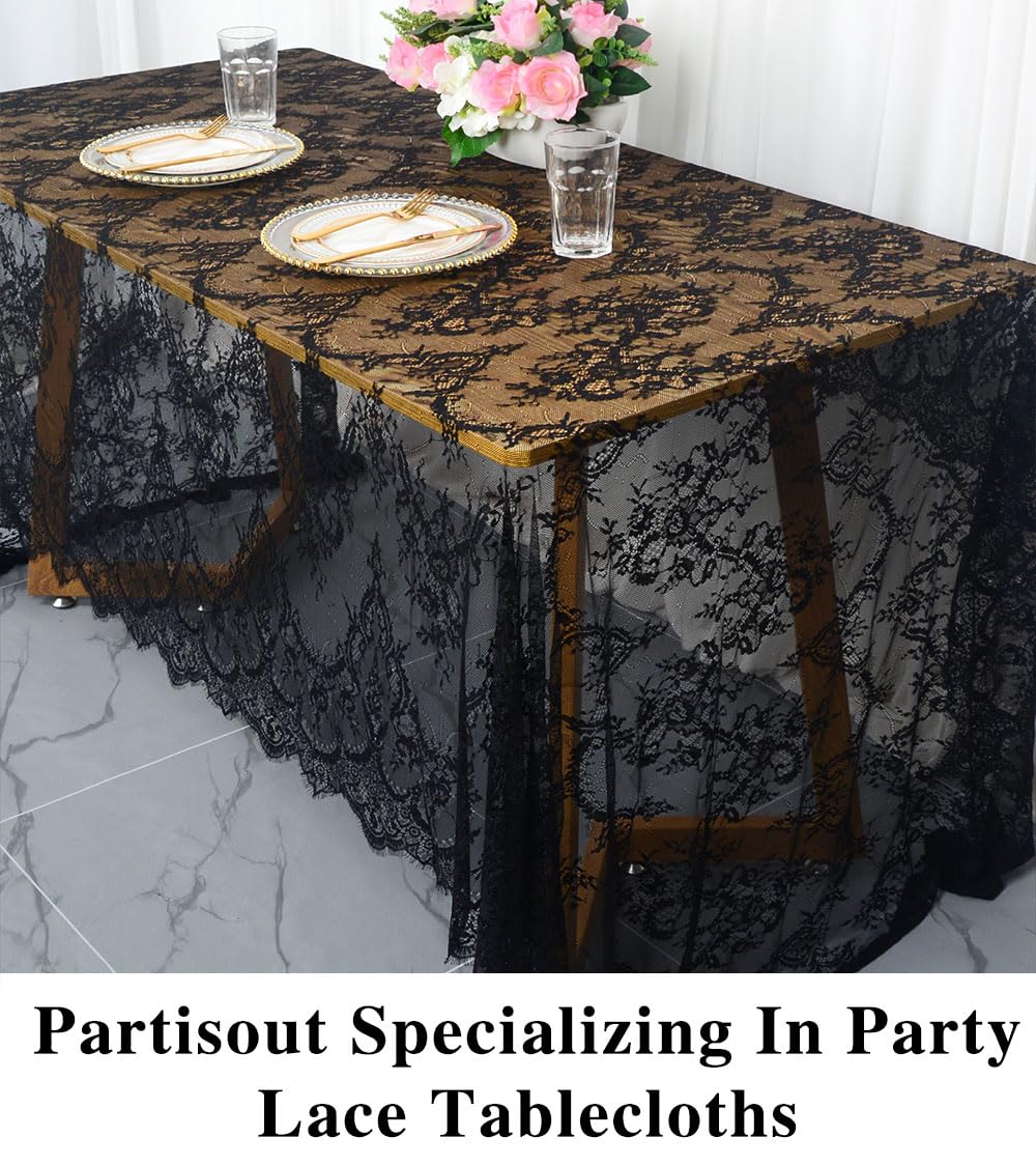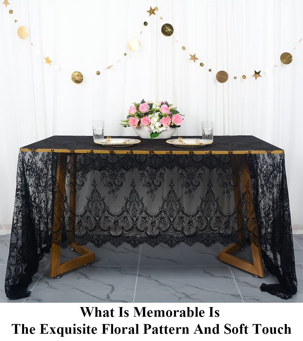 WHAT YOU GET: Width 60 inch x length 120 inches (10 feet) black lace tablecloth rectangular