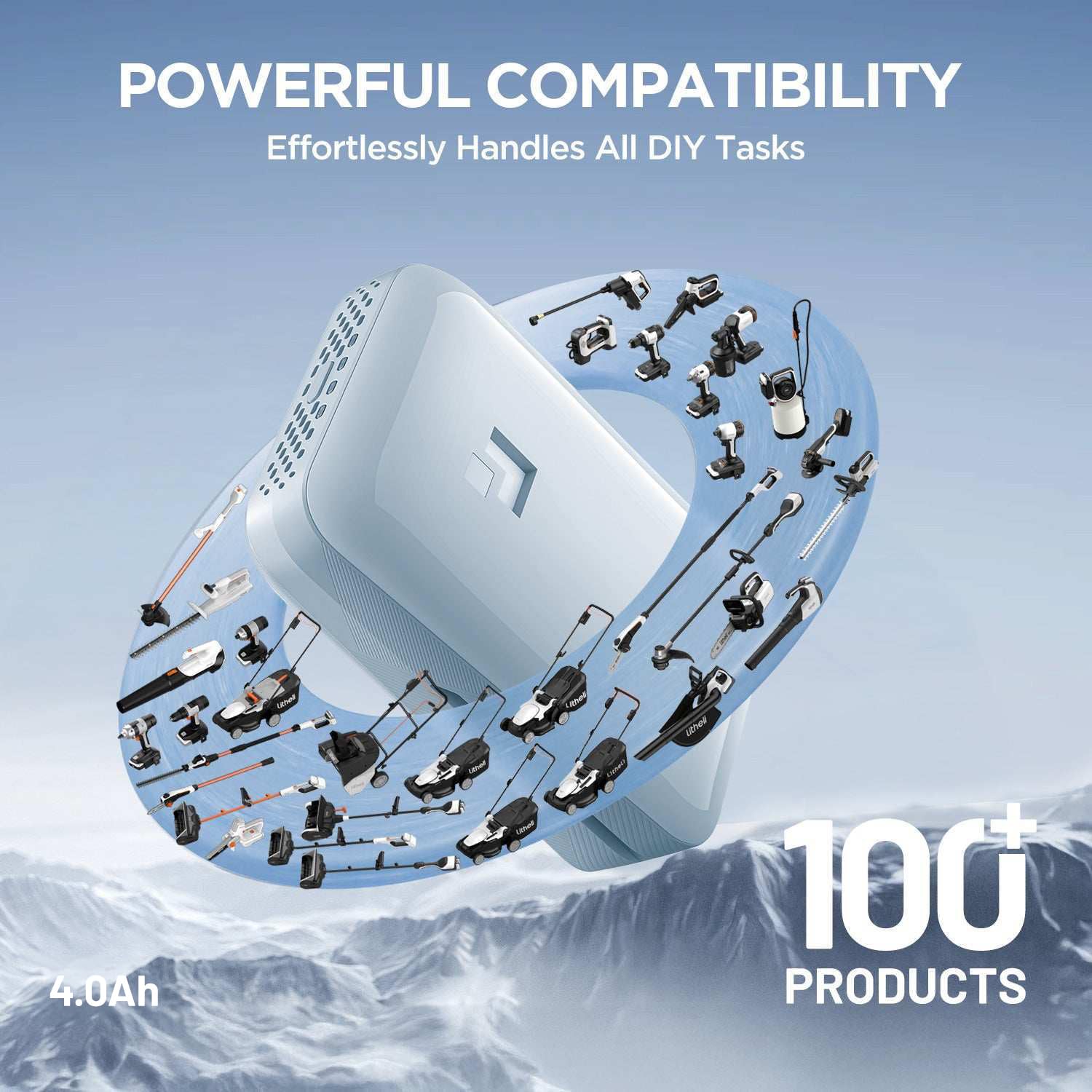 One for All: The Battery Plus is also compatible with 100 + Litheli U20 tools. When used to power U20 tools on gardening or DIY projects, the U-Battery Plus streamlines tasks and improves overall efficiency.