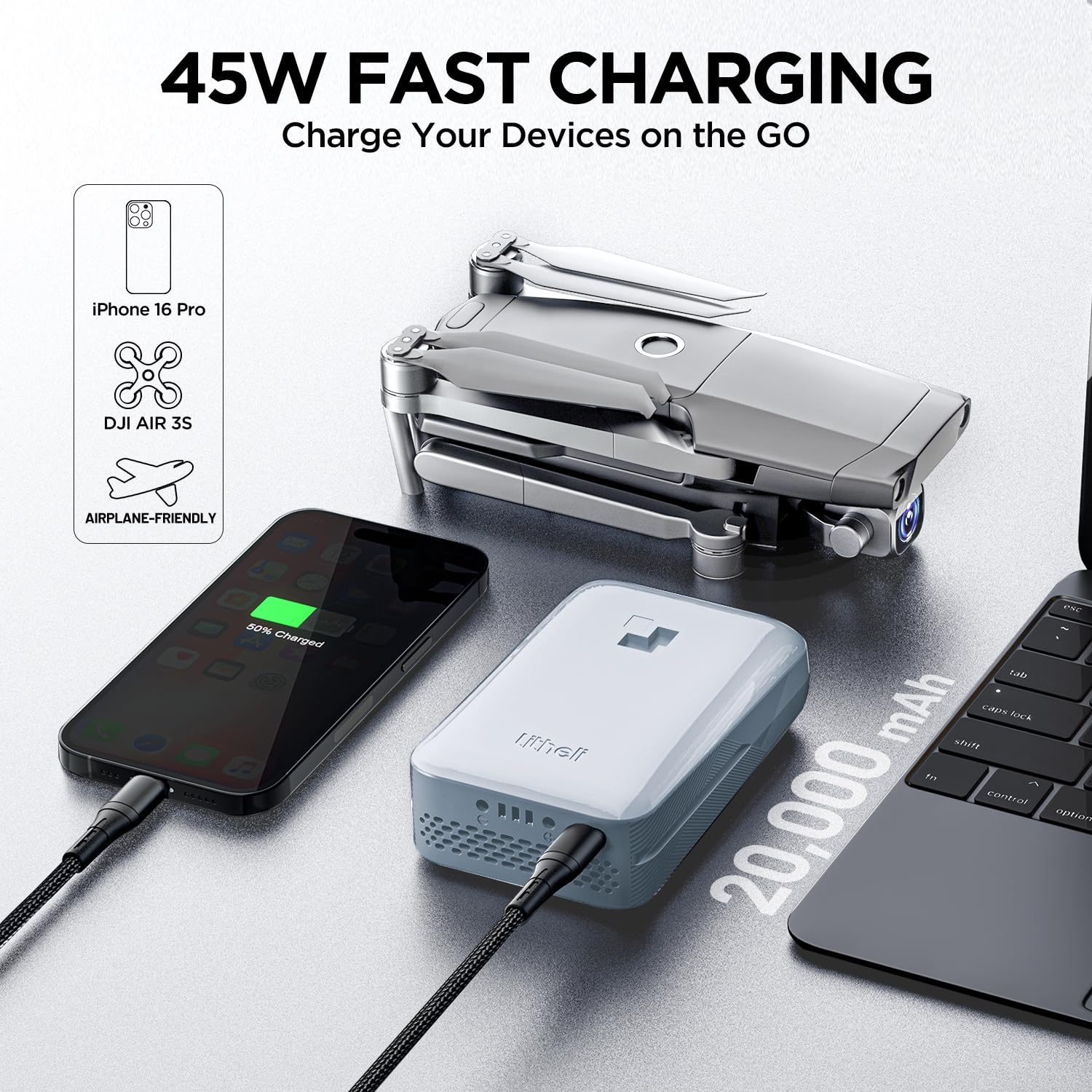 Powerful Compatibility: The Battery Plus portable charger boasts a strong output capacity of up to 45 W, making it compatible with a wide range of devices, such as laptops, smartphones, tablets, drones and more.