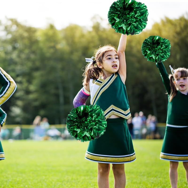 Metallic Foil Cheer Poms - Glitter pom poms are made of premium metallic plastic material, which is shiny and lightweight. Bright enough to attract audience attention, to be the most shiny cheerleader.