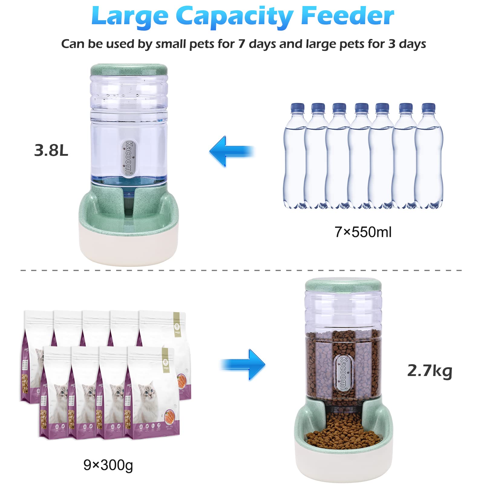 Large Capacity Pet Feeder: large capacity 3.8L, can last about 7days for small pets, 3 days for big pets. You can rest assured to go to vacation, work, party, don't worry that pets will be hungry. The folding bowl can solve the feeding problem when you take your pets out.
