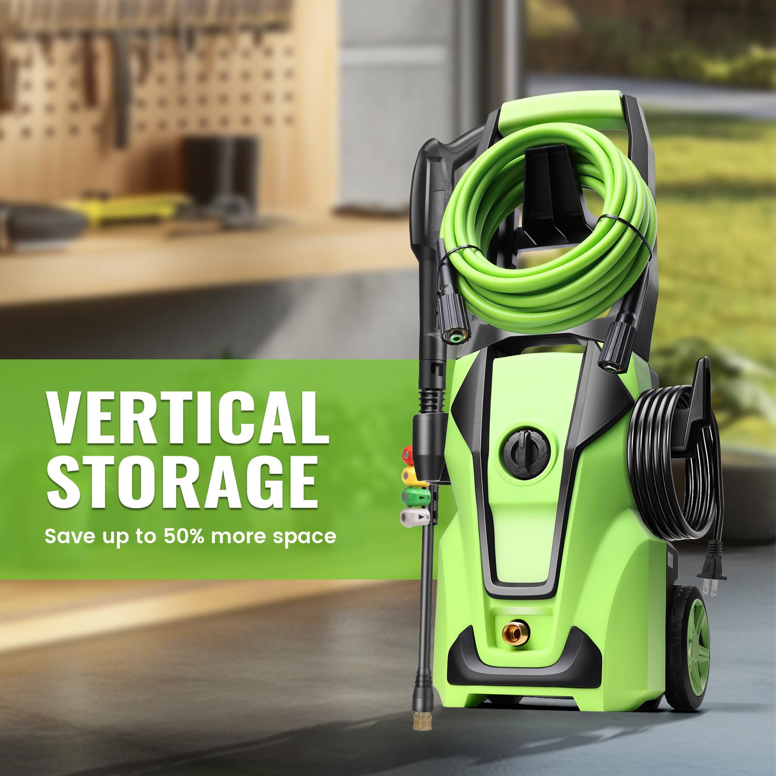 【Aesthetic Engineering Meets Power】The power Cleaner 5000 psi model redefines equipment aesthetics with its hydrodynamic green chassis, while maintaining professional-grade performance through instant-connect nozzles and tool-free hose storage system that simplifies setup by 70%.