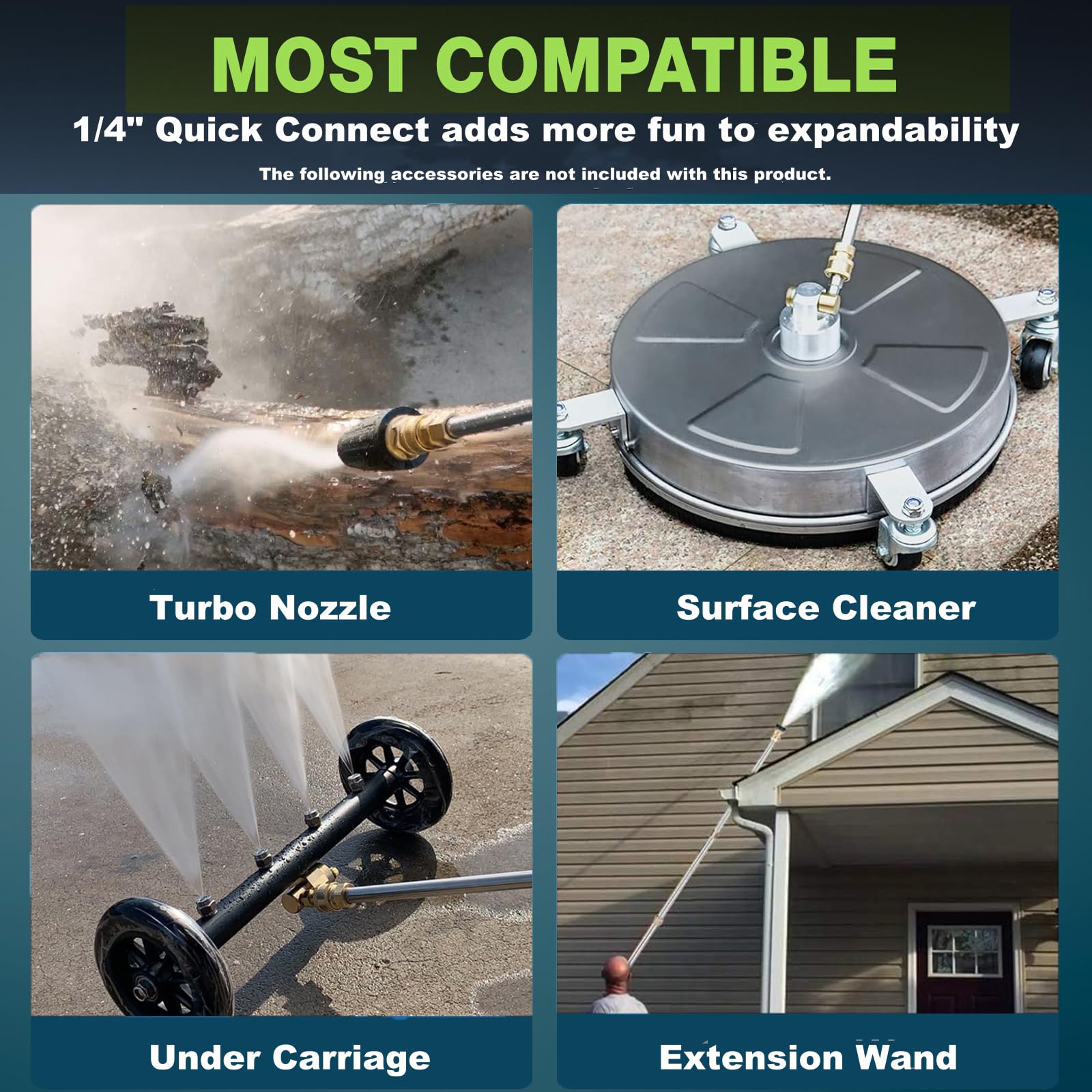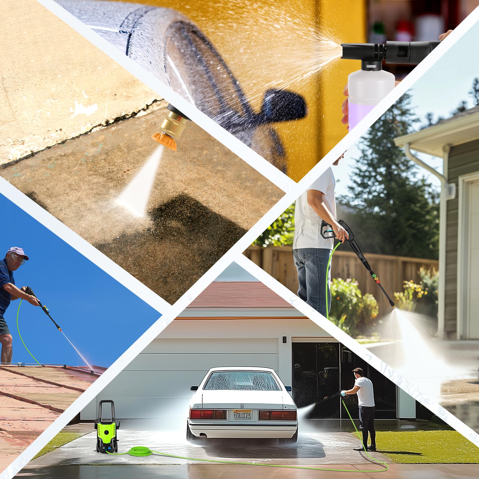 【Multi-Surface Cleaning Mastery】This premium 5000 psi pressure Cleaner delivers versatile cleaning solutions with 0°(heavy grime), 15°(concrete), 25°(patio furniture), and 40°(delicate surfaces) quick-connect nozzles, complemented by an extension wand and foam cannon - your all in-one powerCleaners for home system for cars, decks, and driveways.
