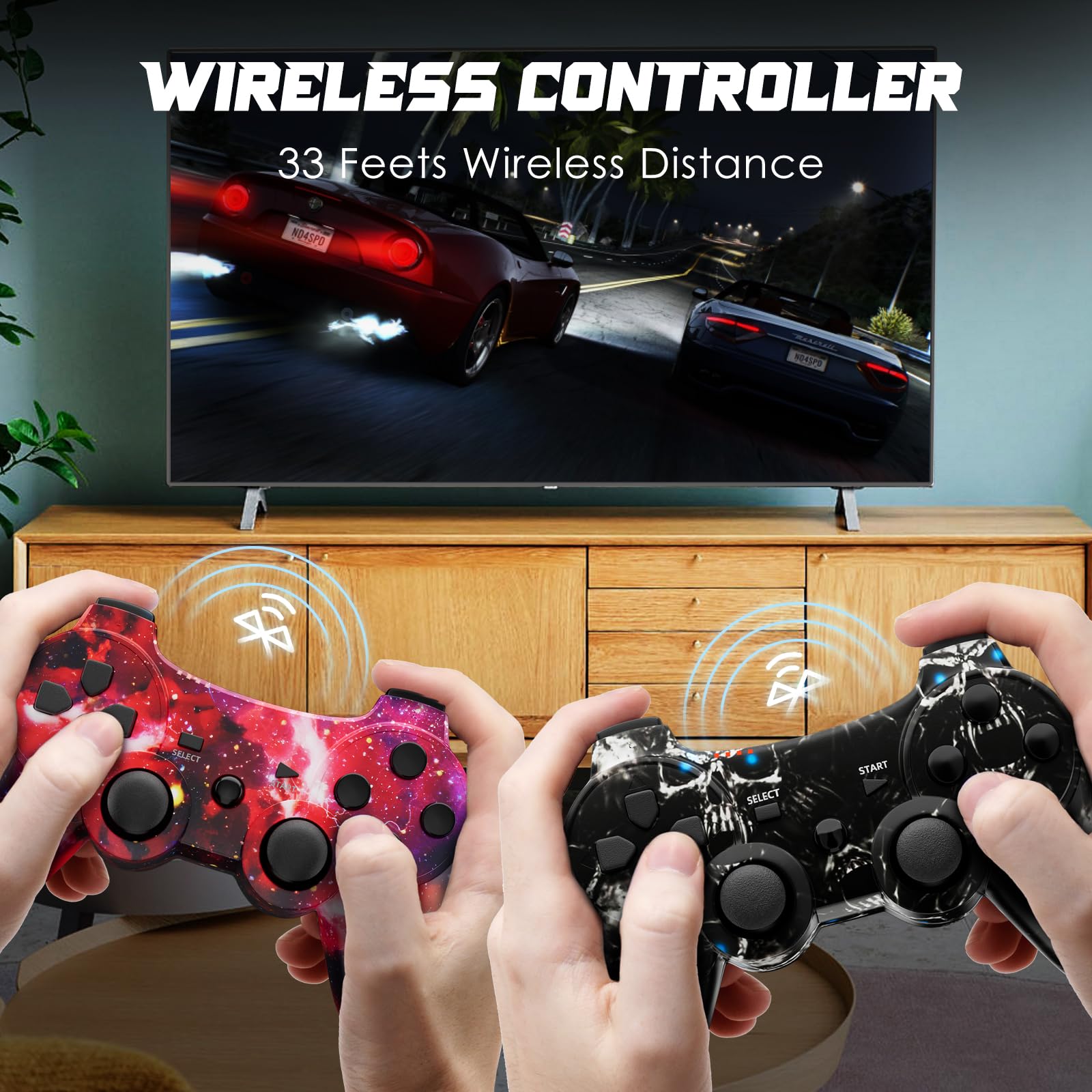 PLAY IN STYLE--Black Ghost Style AND Galaxy Nebula Style Controller 2 Pack Compatible with PS3/Pro/Slim.(NOTE: Please activate device with USB cable for the first match connection).