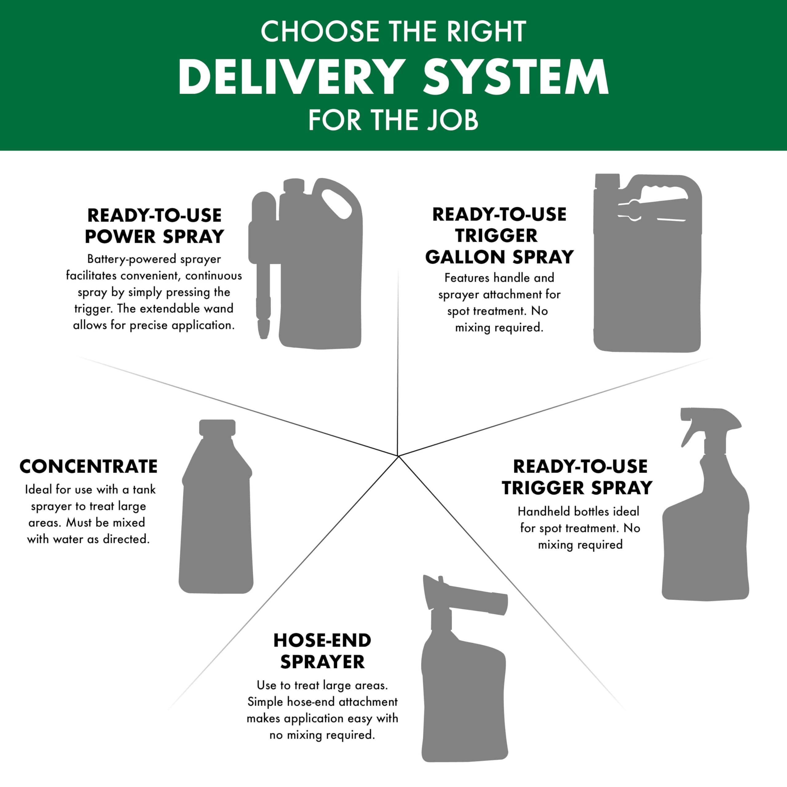 Spectracide Weed & Grass Killer for use with the AccuShot Continuous Power Sprayer (sold separately with Spectracide Weed & Grass Killer) is pre-mixed and ready to use for spot treatment of weeds and grasses. Use it on and around patios, walkways and large areas. This formula is rainproof in 15 minutes — rainfall or watering after 15 minutes won’t wash away effectiveness. Spectracide Weed & Grass Killer3 kills down to the root and delivers visible results as fast as 3 hours. This product kills weeds and grasses as listed, including chickweed, plantain, dandelion, annual bluegrass and clover. Plant new flowers, trees and shrubs in the treated area after just 1 day. For best results, apply during warm, sunny weather when the temperature is over 60 degrees. The AccuShot sprayer allows for continuous spraying and precise application. It features a comfortable, ergonomic grip and an extendable wand that makes it easier to target only the weeds you want to kill. In addition, it features a one-touch continuous spray that requires no repetitive squeezing, pumping or pulling. The AccuShot sprayer is reusable — keep it for use with Spectracide Weed & Grass Killer.