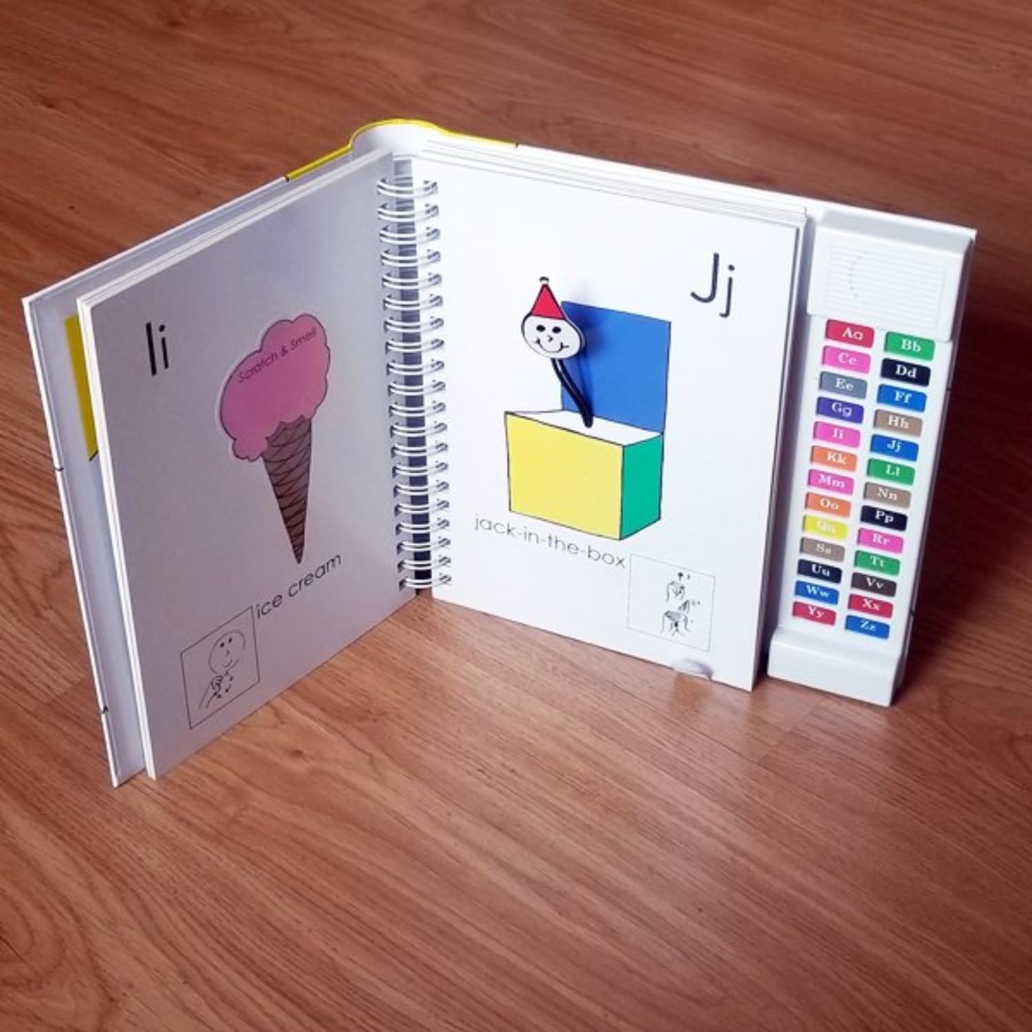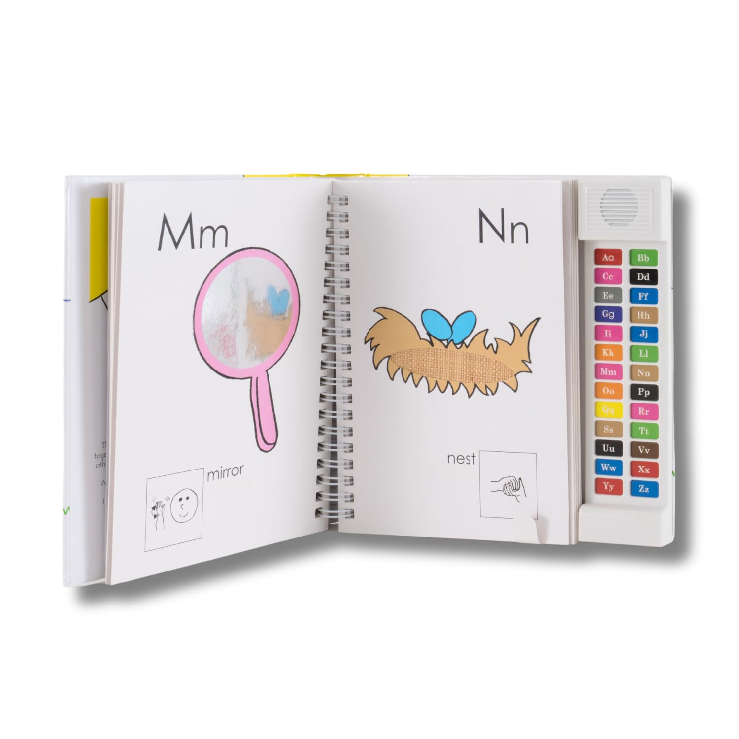 Completely interactive ABC picture book focusing on integrated sensory methods to learning.
