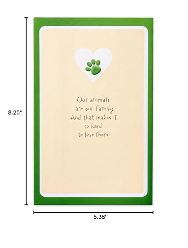 Help them through this challenging time with this Pet Sympathy card from American Greetings. Perfect for anyone who has lost a dog, cat, or any furry friend that brought joy to their life. This calm yet warm design features a paw print inside a heart that’s enhanced with raised detailing and foil elements. The hand lettering carries a message that perfectly describes how much pets mean to us and offers a wish for comfort. This card will help carry on the legacy of their beloved pet. Envelope included. Only from American Greetings.