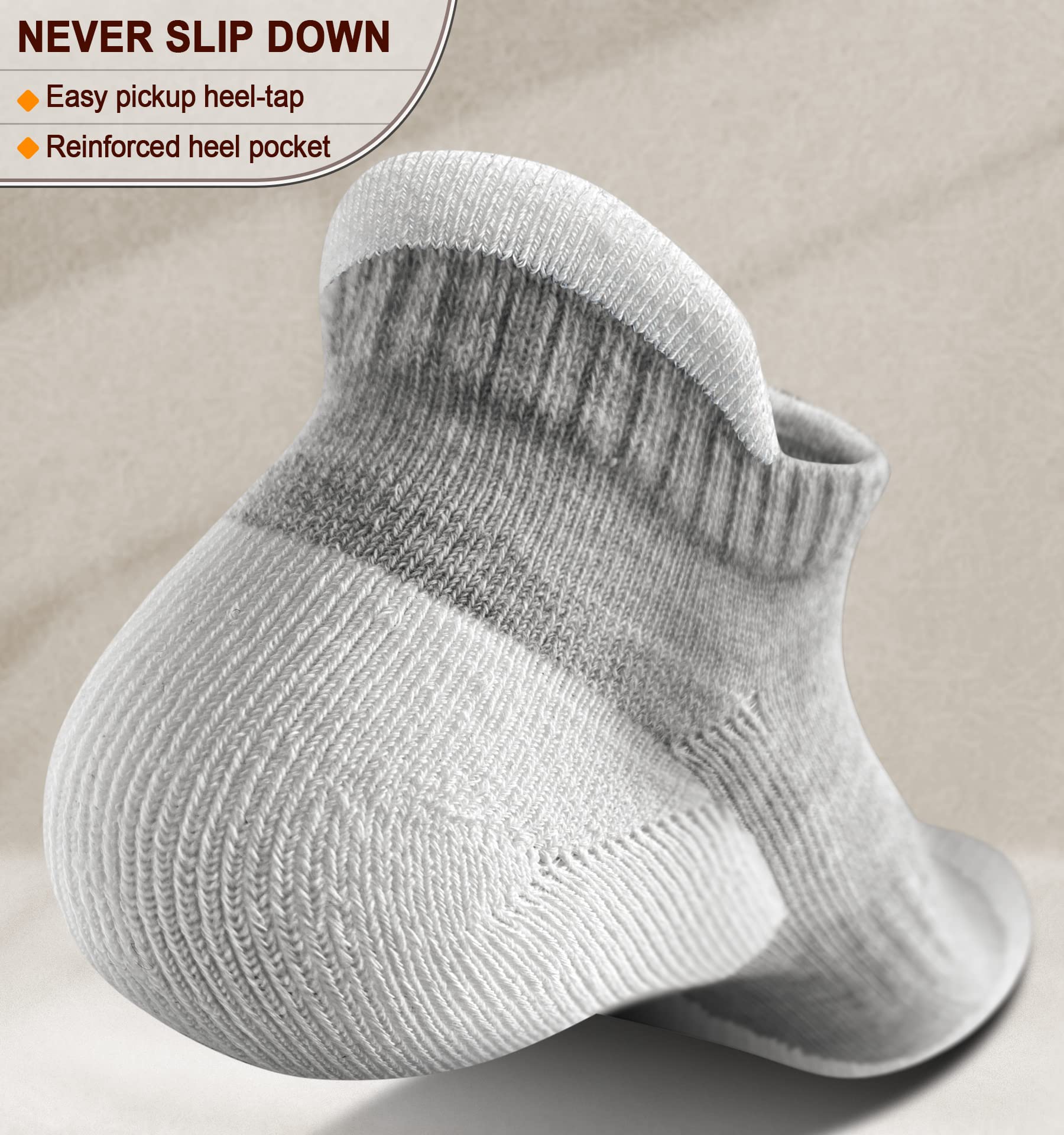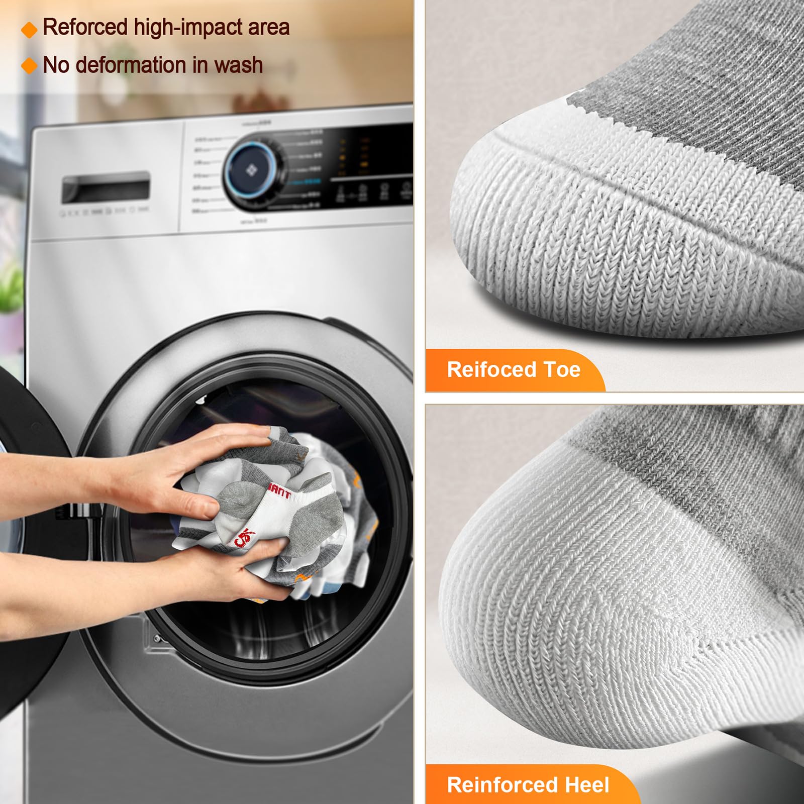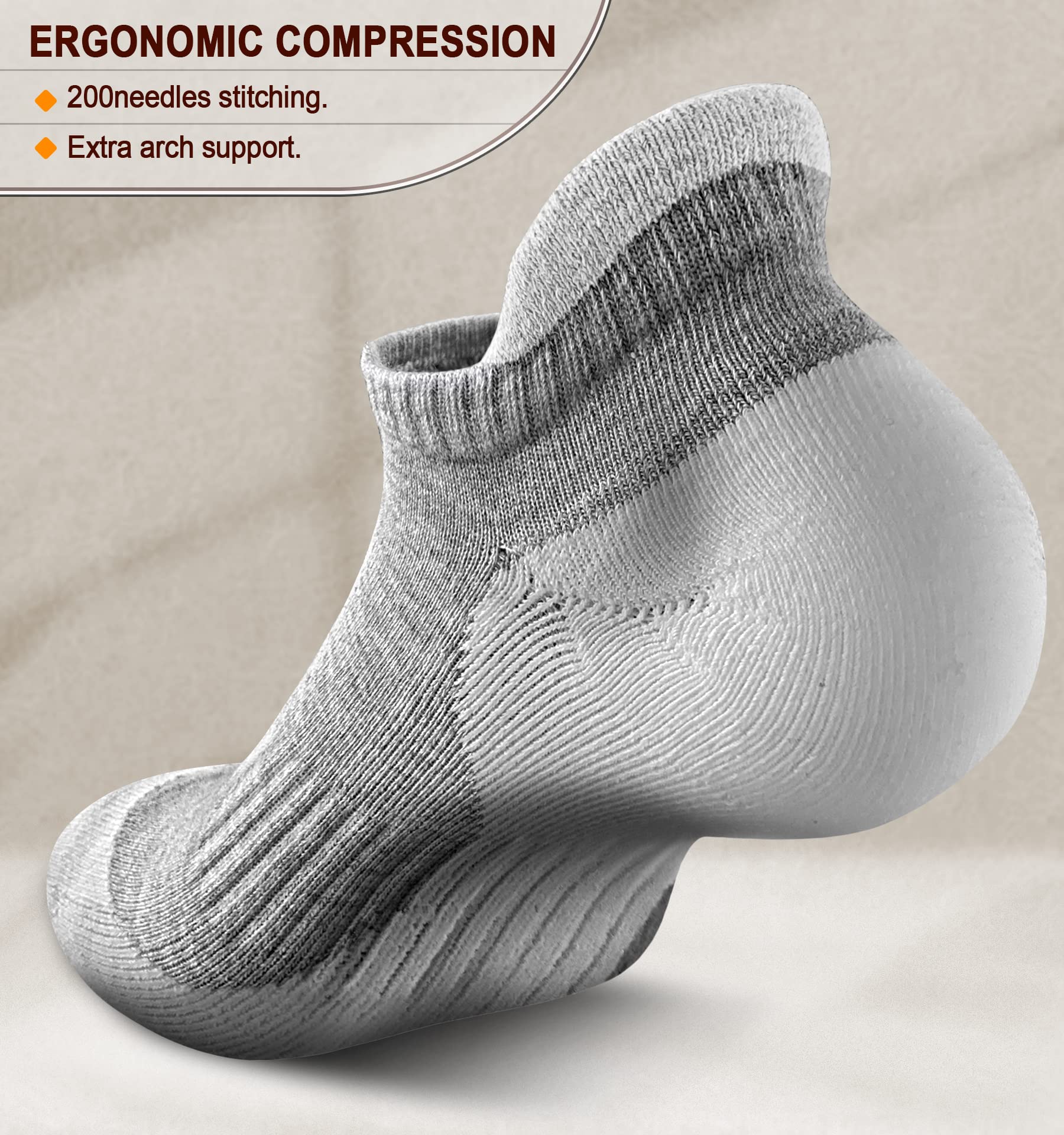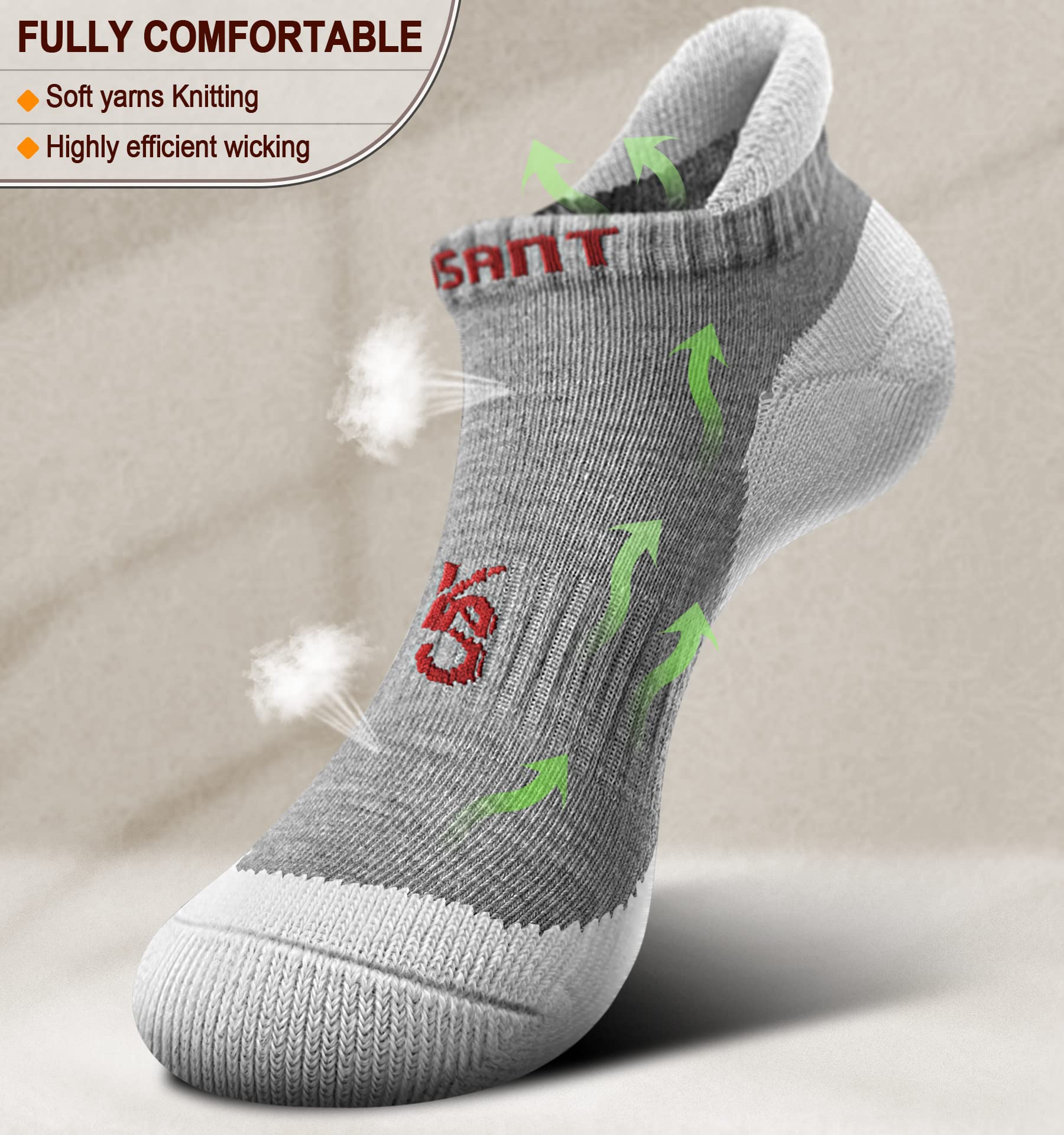 Durable--The 200 needle-count fabric knitting all around,high-density cushion in full sole and double knitting in all the joint positions,all these details proivdes a superior reliability and durability to this athletic socks to against any problem of tearing off or wearing out;