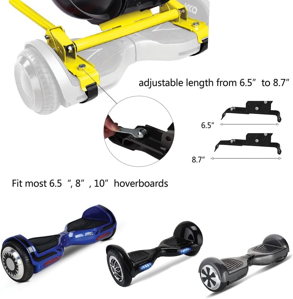 FULL COMPATIBILITY - This accessory is compatible with most popular 6.5", 8" & 10" hover boards. (Don't fit the hover board which has a bar in the middle.) The brackets and straps can be adjusted and fastened to suit different tire sizes.